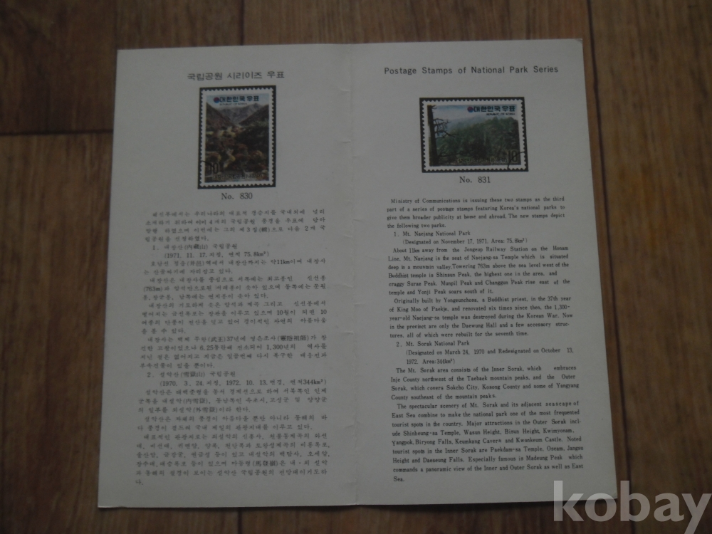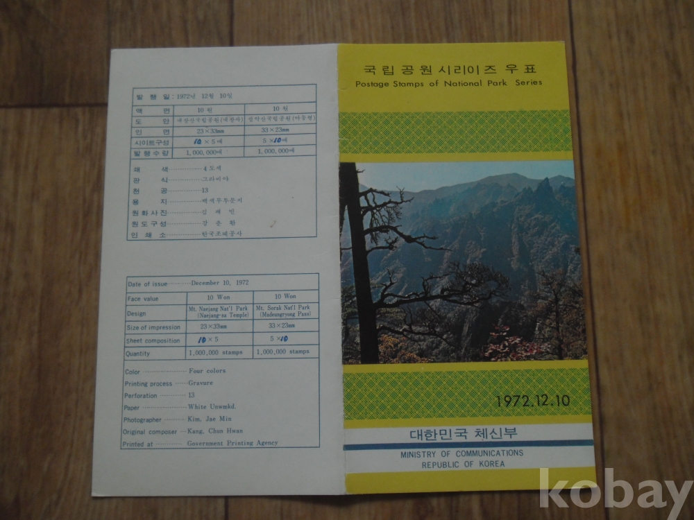 1972년 국립공원시리즈 우표 안내장