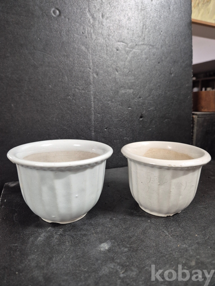 높이 7cm 정도의 백자사기 화분 2점입니다.