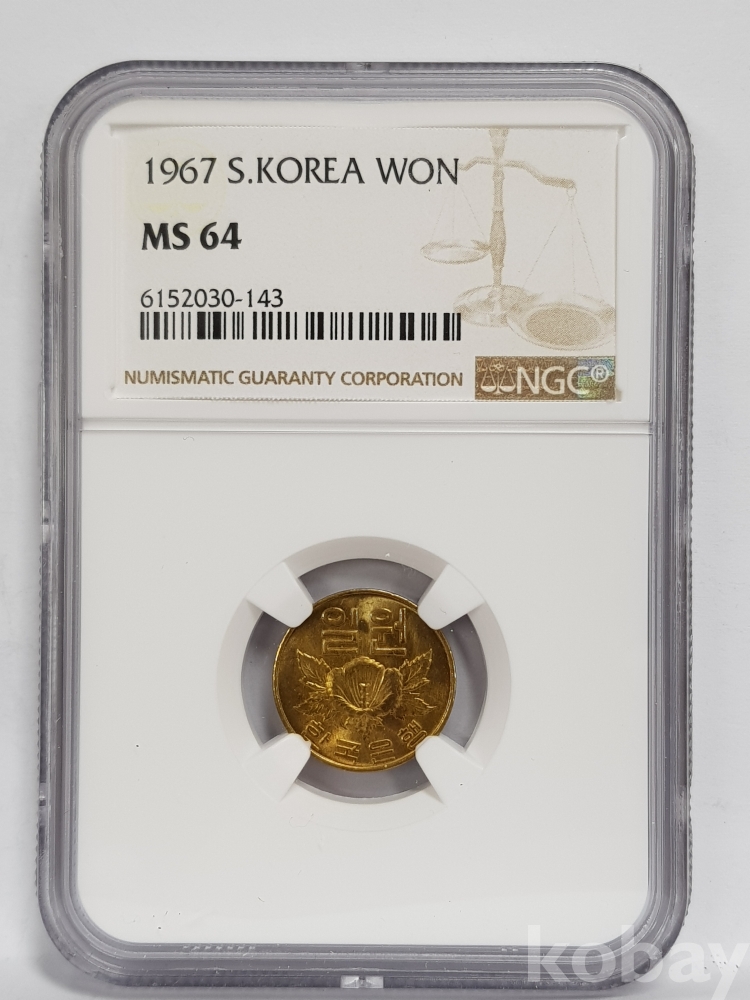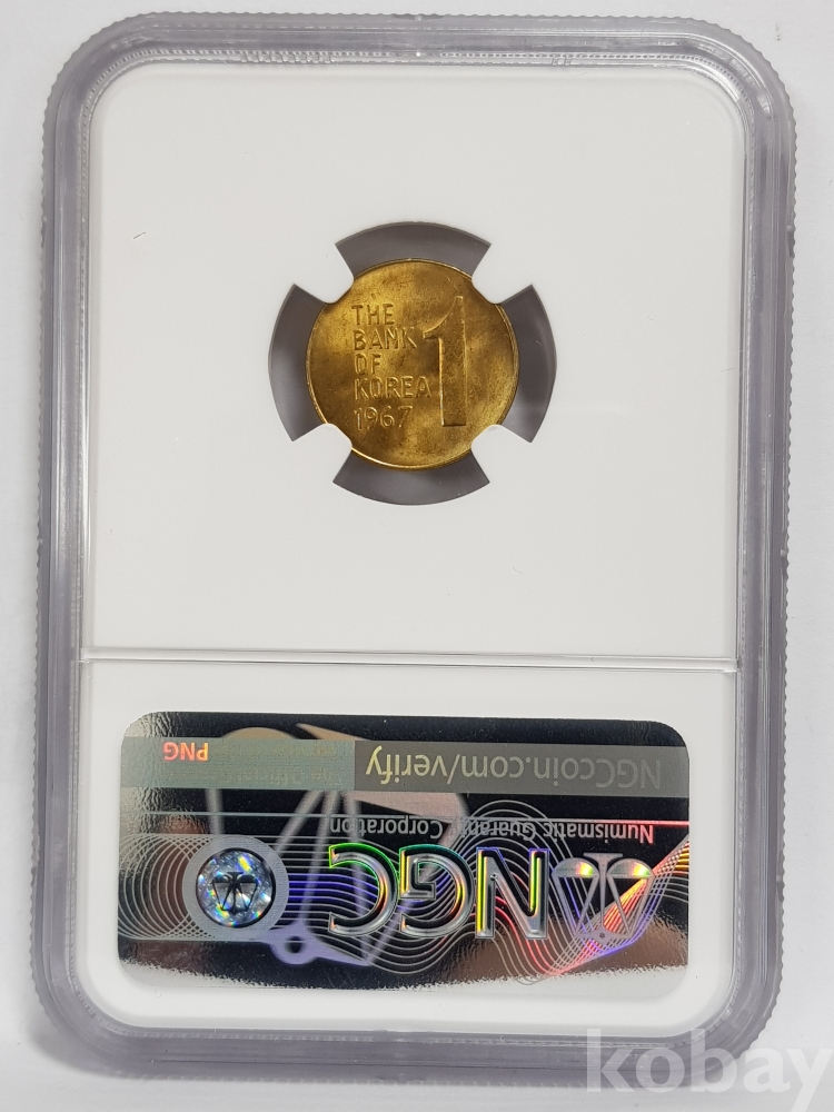 - 준특년도 1967년 1원 / 1주 NGC MS 64 그레이딩 인증 주화
