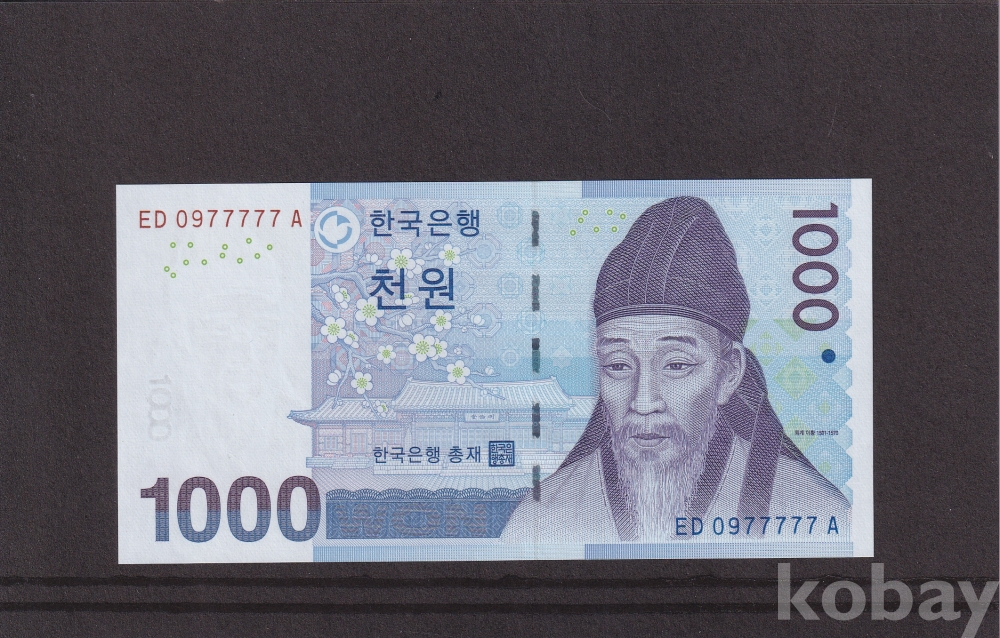 - 3차 천원 EDA 0977777 특이번호 파이브카 미사용 지폐