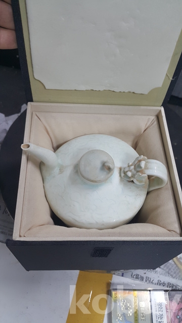 a-149. 고급상자에든 오래된 송연청자당초문 찻주전자