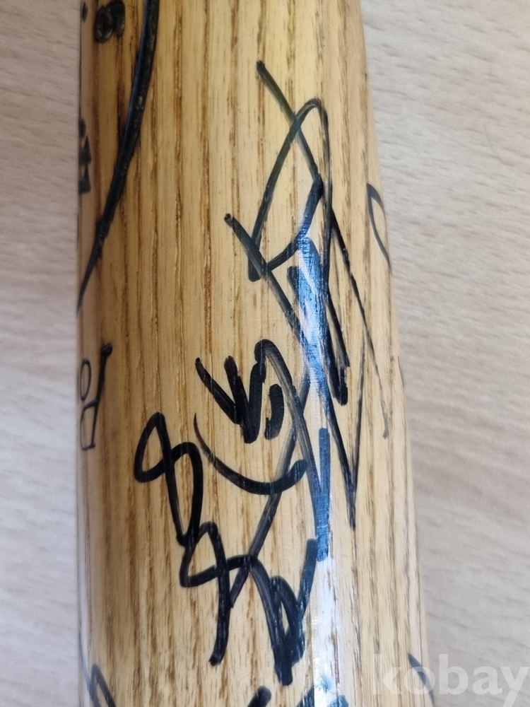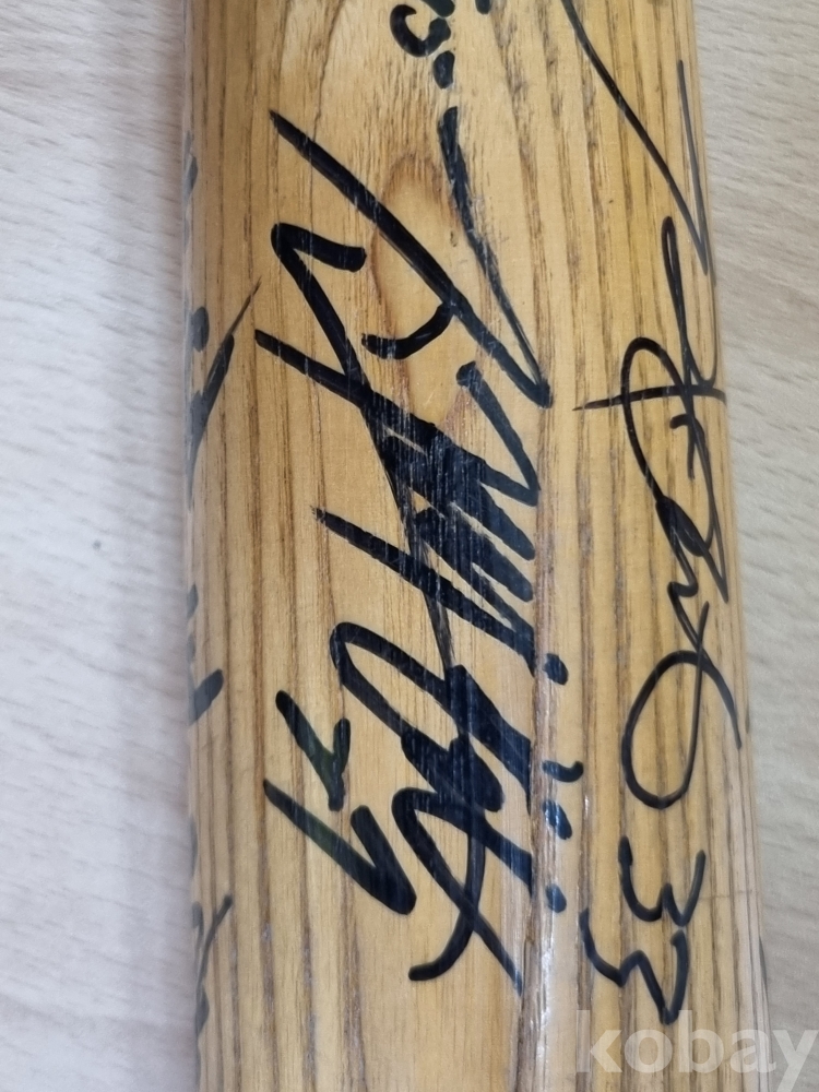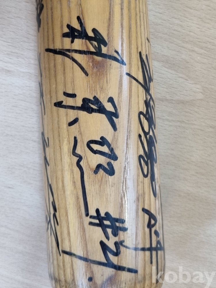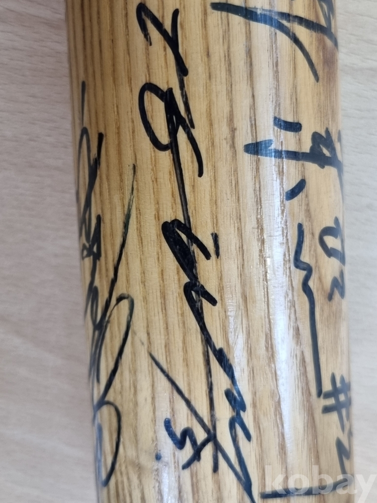 단체 사인이 담긴 희귀 나무 배트입니다.