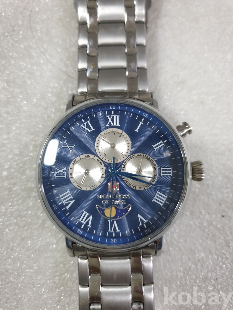 {천원경매}4-1932 몽크로스 파랑 메탈 시계 (작동확인 안됨. 정품확인 불가)