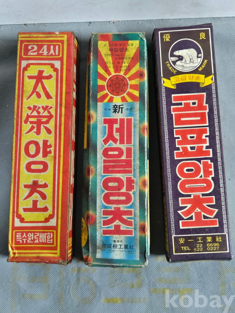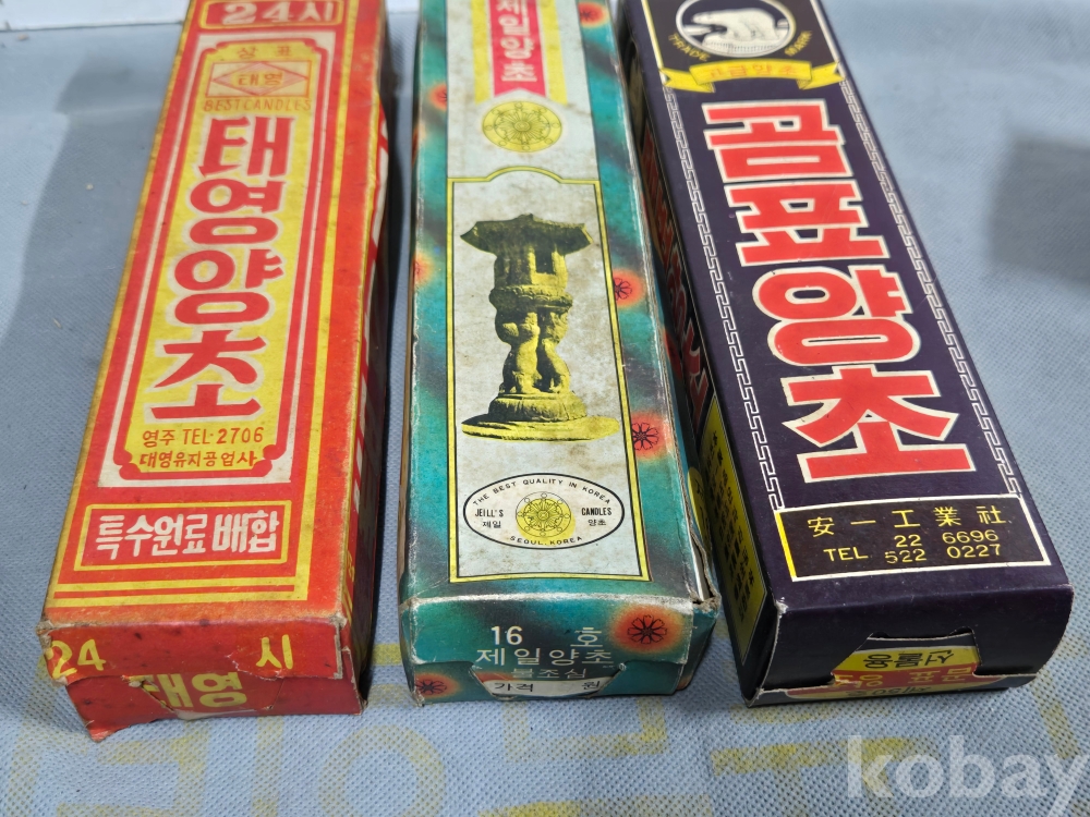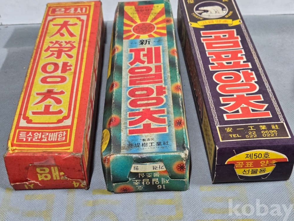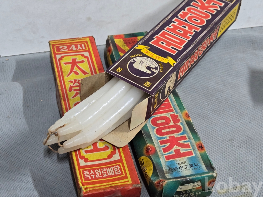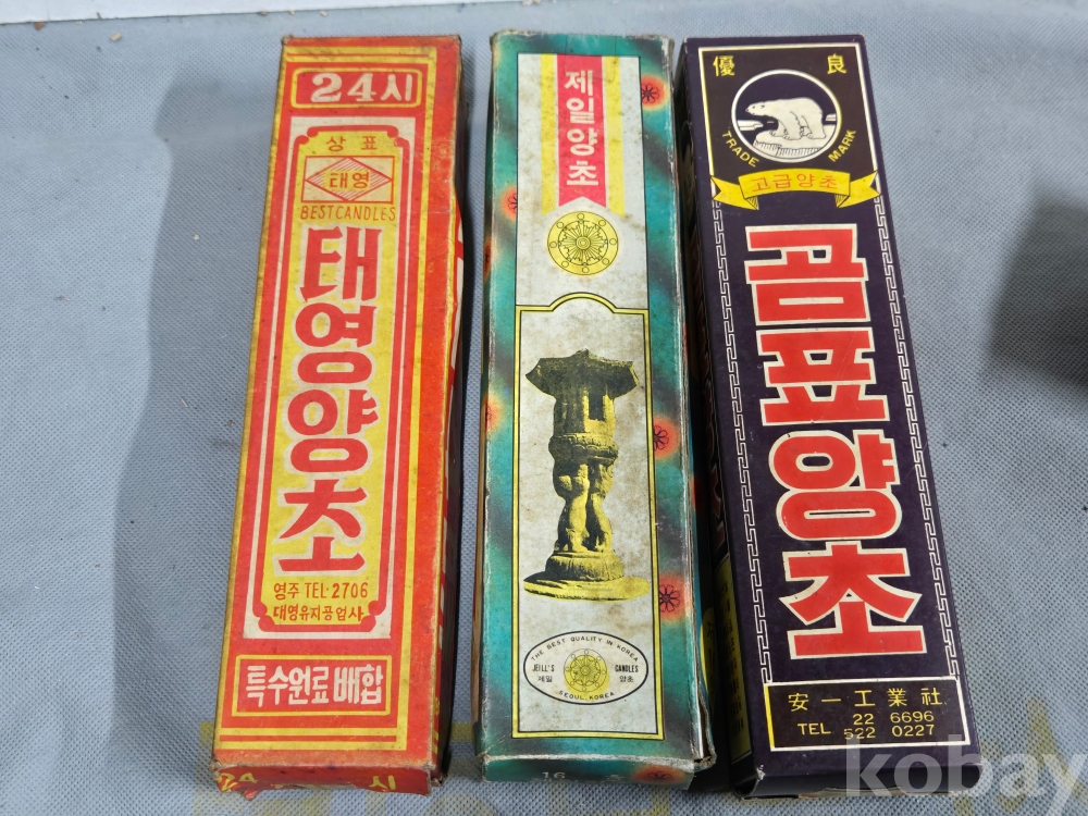70-80년대 미사용 양초 3박스 == 태영양초 . 제일양초 .곰표양초 == 미사용 (내용물 있음) 박스 형태 3점 일괄