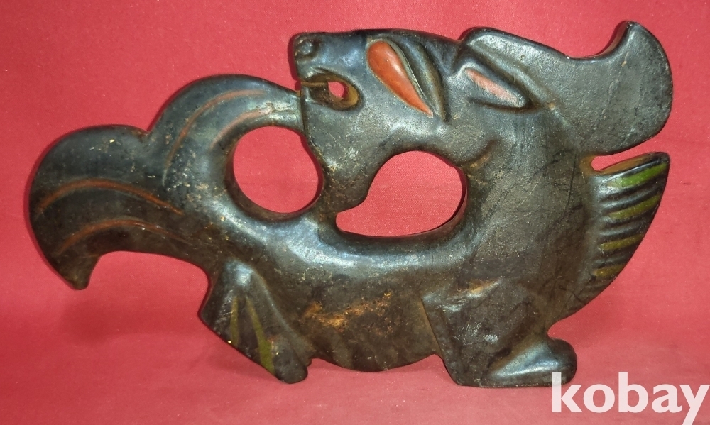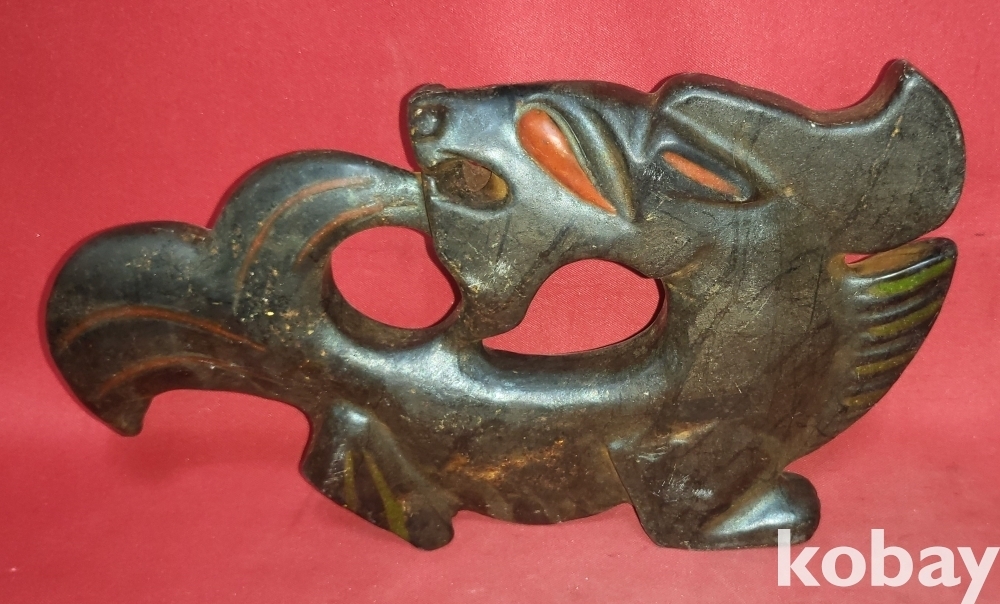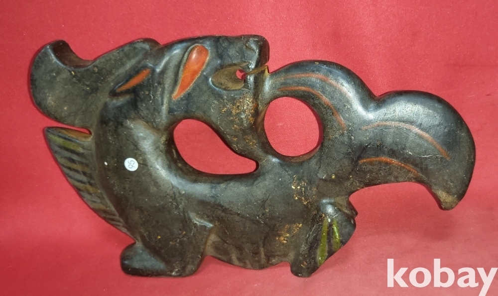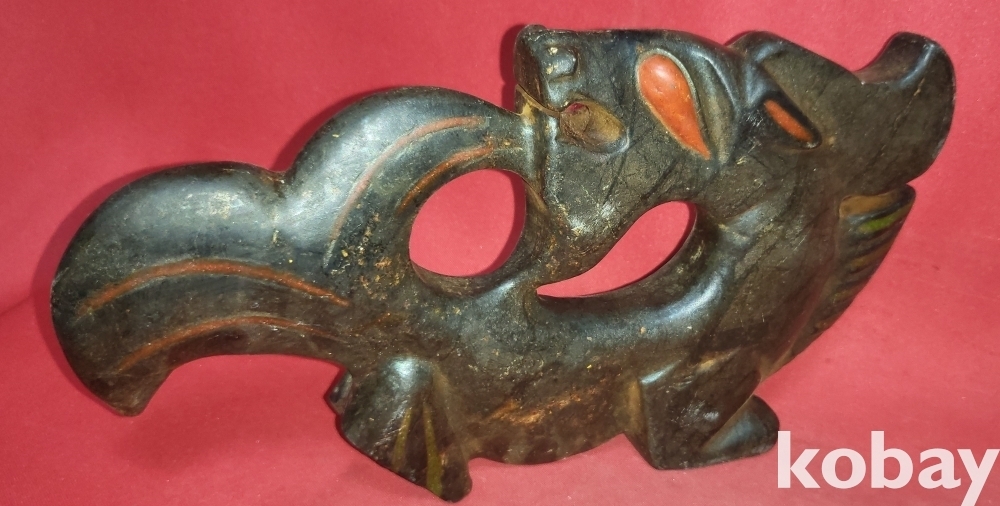 일반 홍산문화와는 다르게 흑옥에 홈을 파고 그 위에 다른 물질을 입사한 특별한 기물입니다,