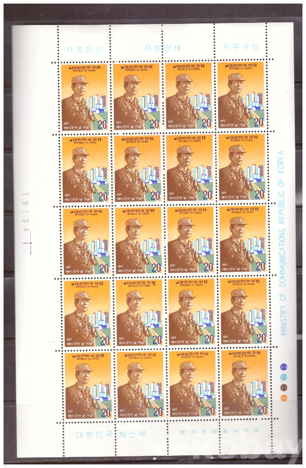 (한국전지) 1977.4.2 예비군의 날 sheet of 20 MNH