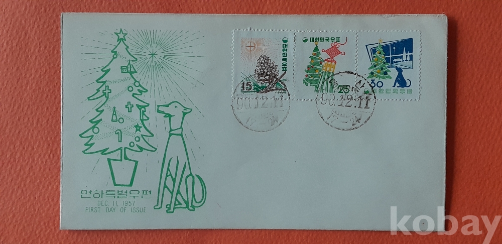 1957년 발행 1차 연하 초일봉피 입니다.