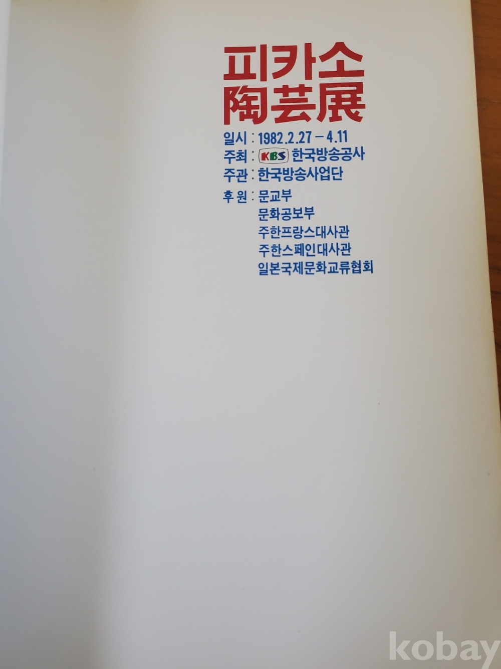 1. 피카소 도예전, 한국방송사업단, 1982년, 148쪽, 상태 상, 사진 참조