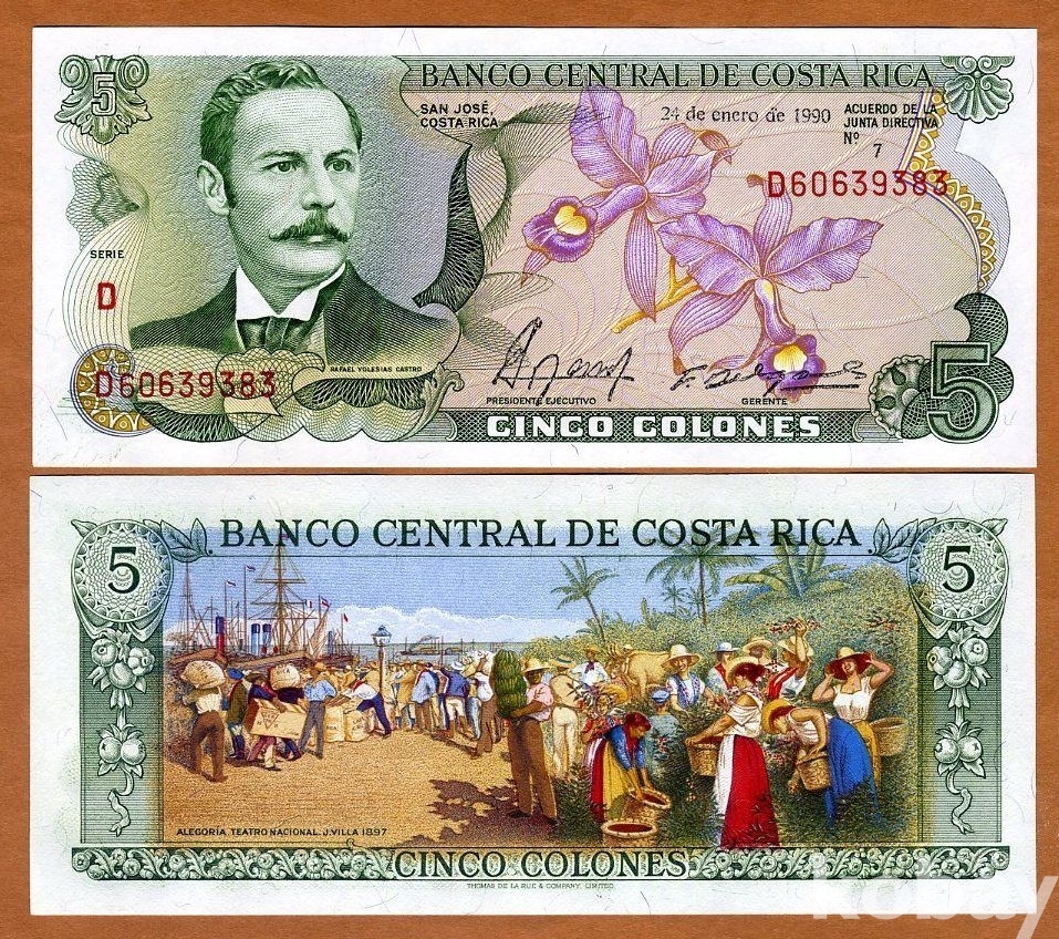 코스타리카 5 콜론 1990 년 (Coffee Flower + 명화가 있는 지폐)