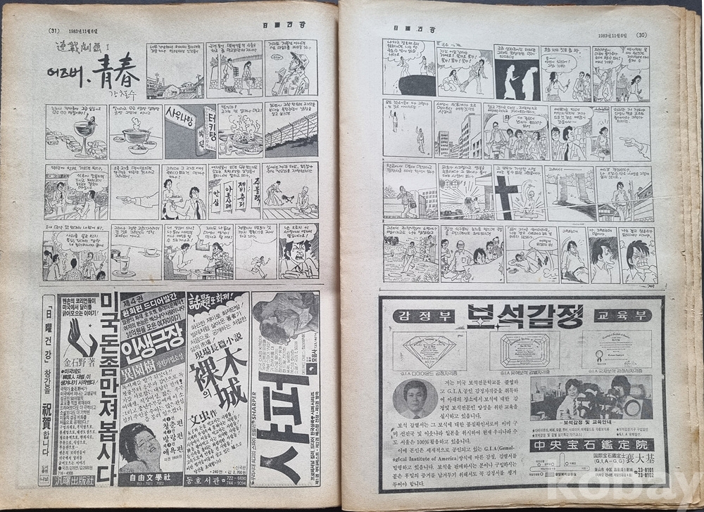 안기태의 '아리송군', 강철수의 '어즈버 청춘' 등 당대 인기 만화가 수록되어 있어 문화사적 가치가 매우 높습니다.