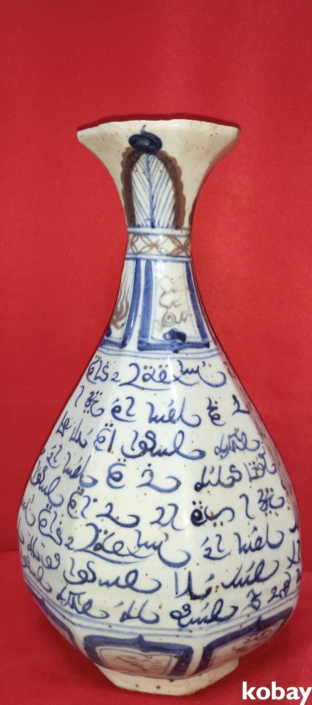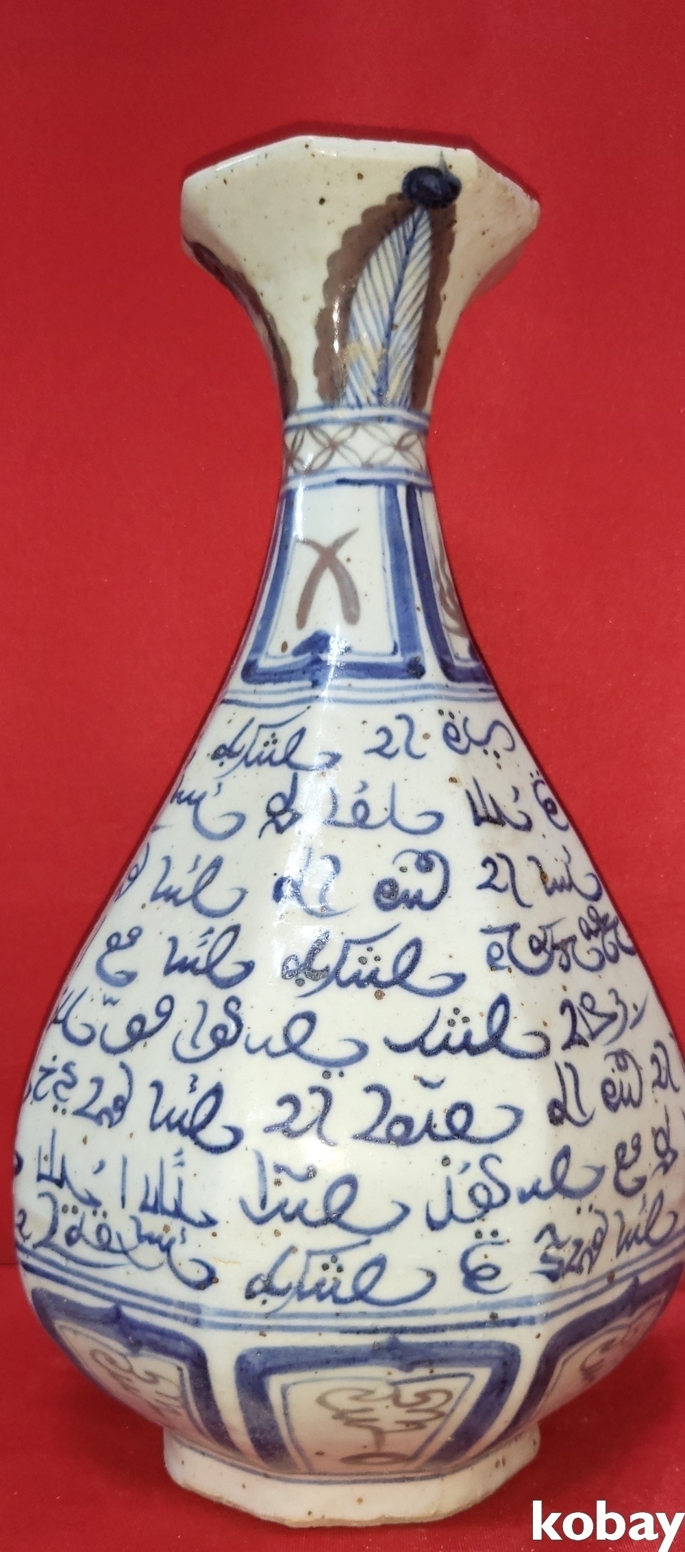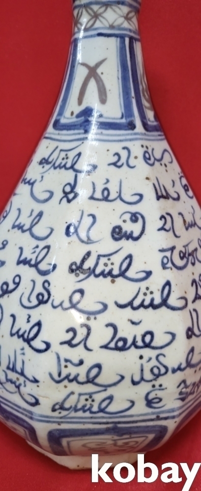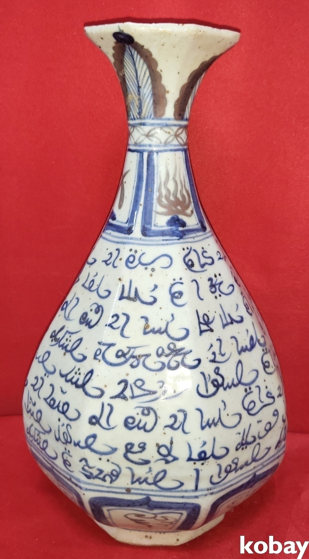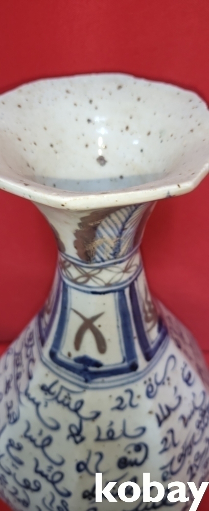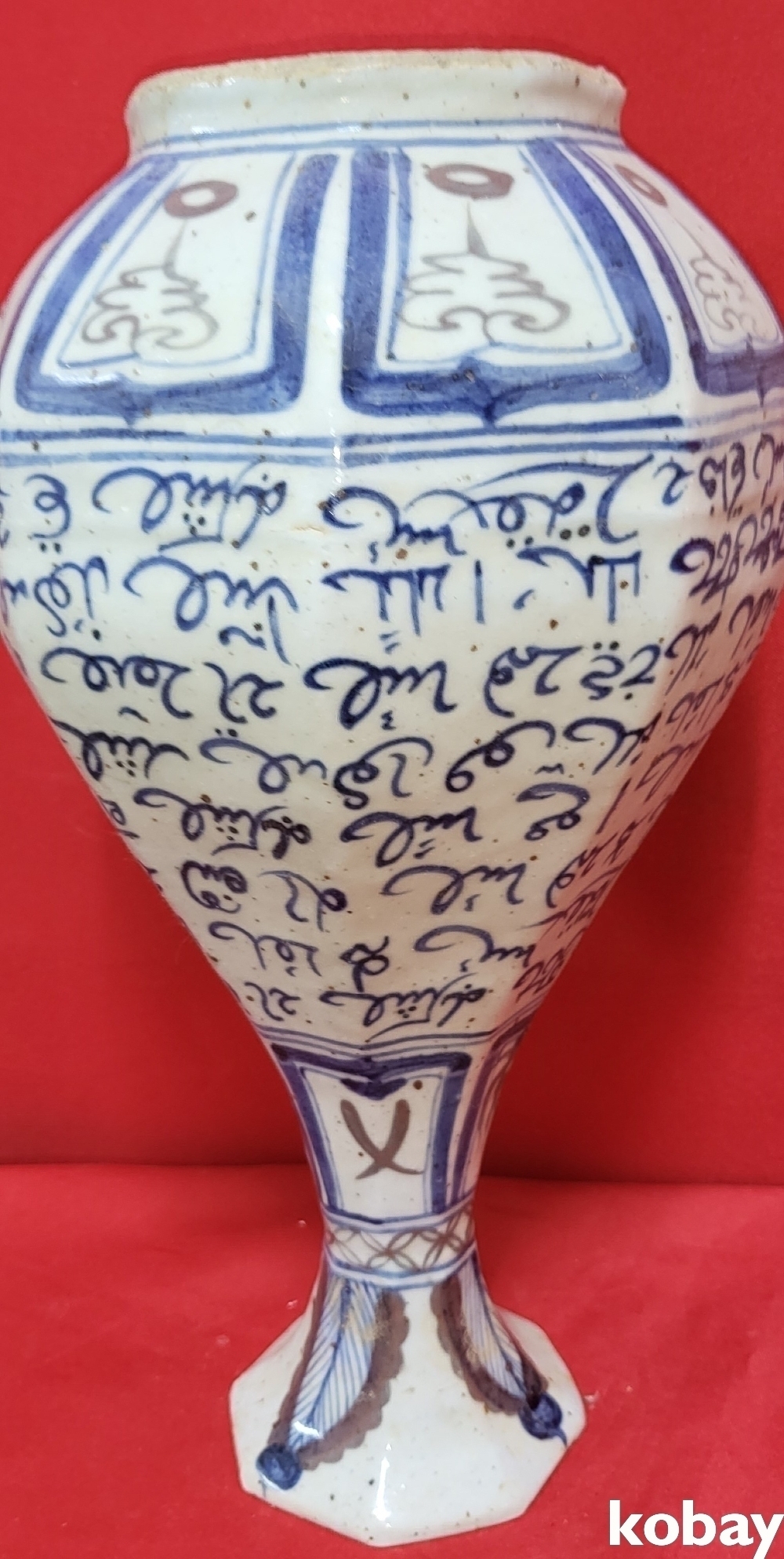 梵語) 문자가 기물 전체에 청화로 시문된 귀한 8각병입니다,