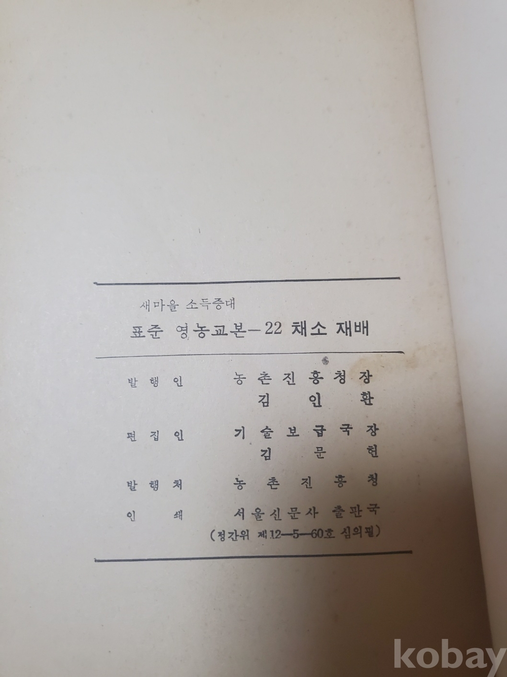 1. 새마을 소득증대 표준영농교본 22 - 채소재배, 농촌진흥청, 1975년, 283쪽, 상태 상, 사진 참조