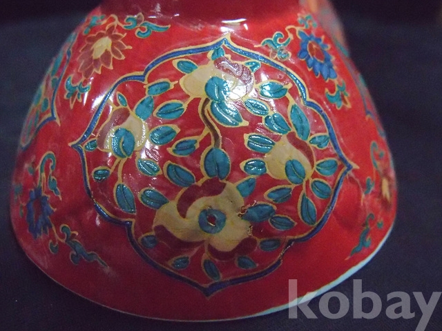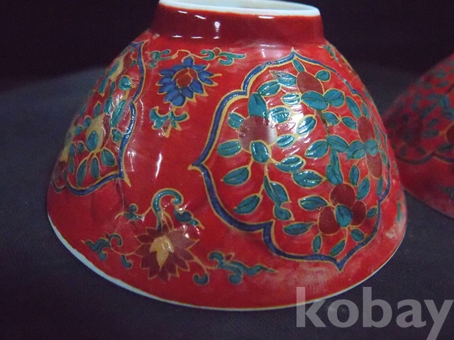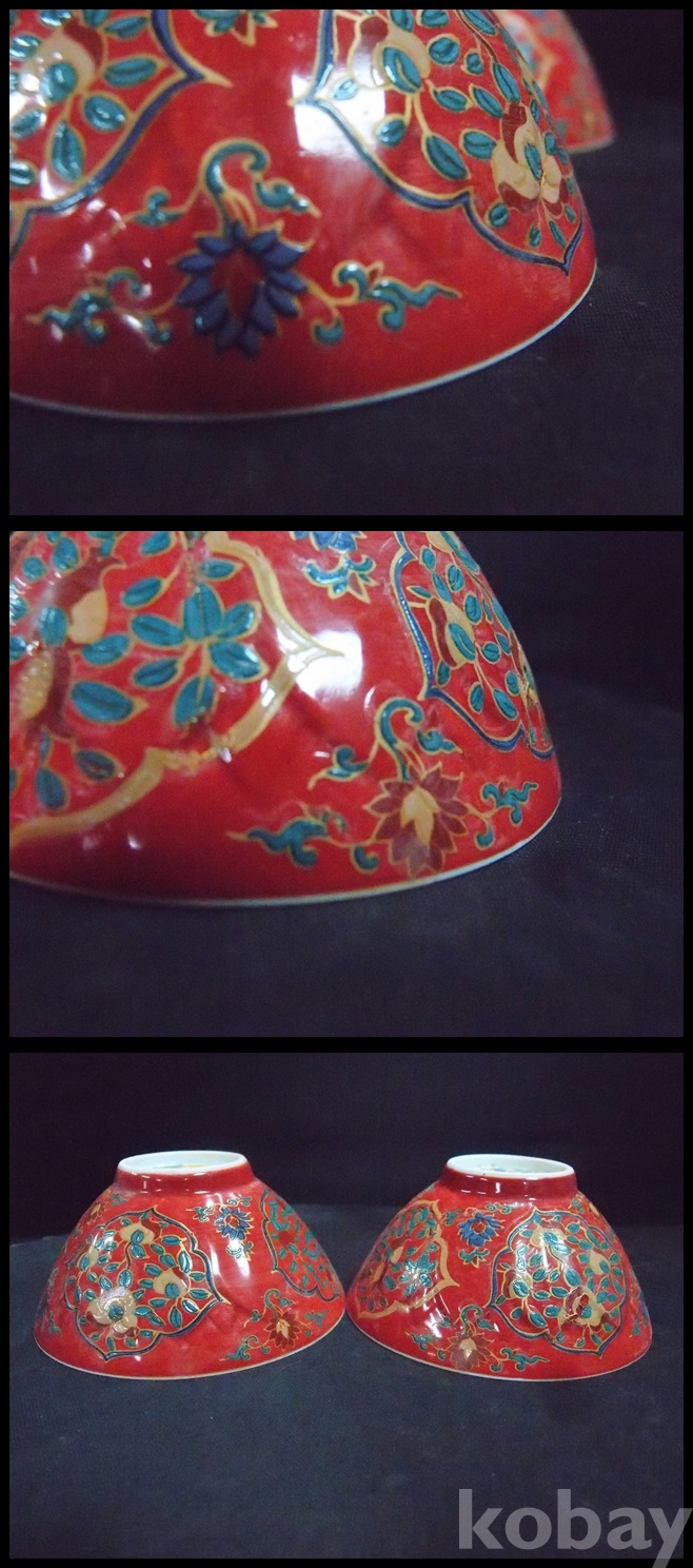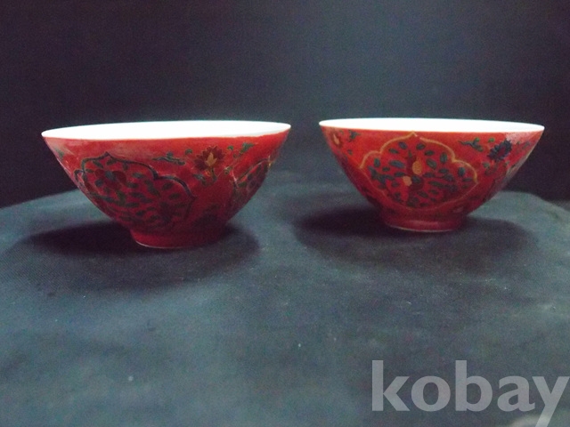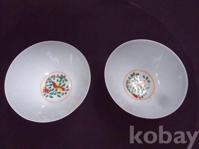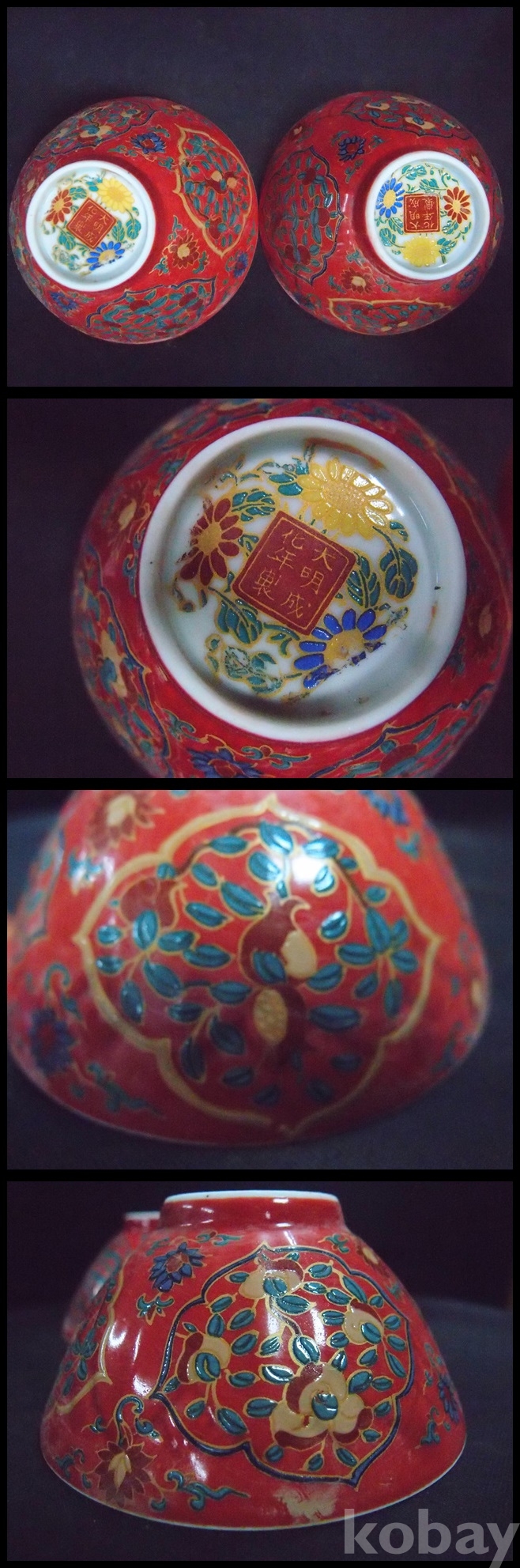 e-49.입체감이있는 금채대명성화년제 연화문조각이있는 화조문배1쌍