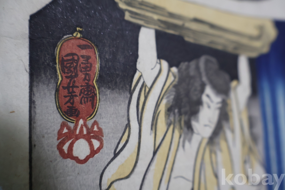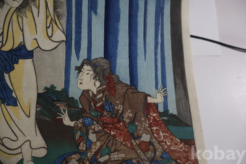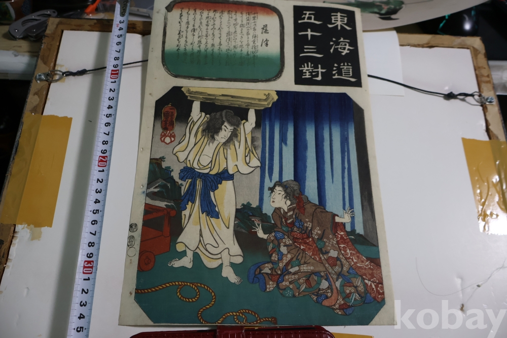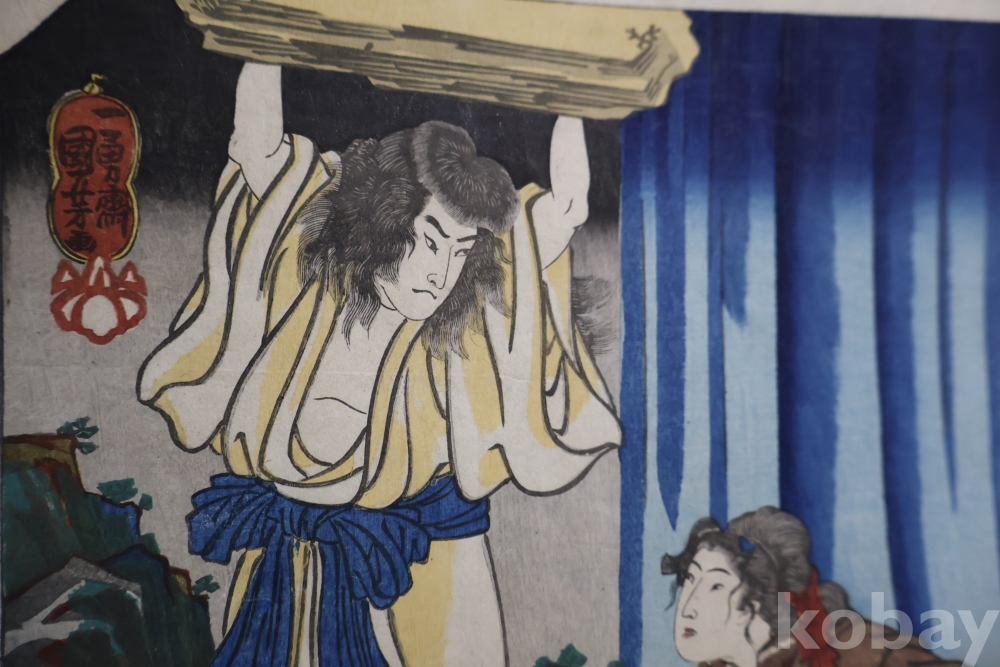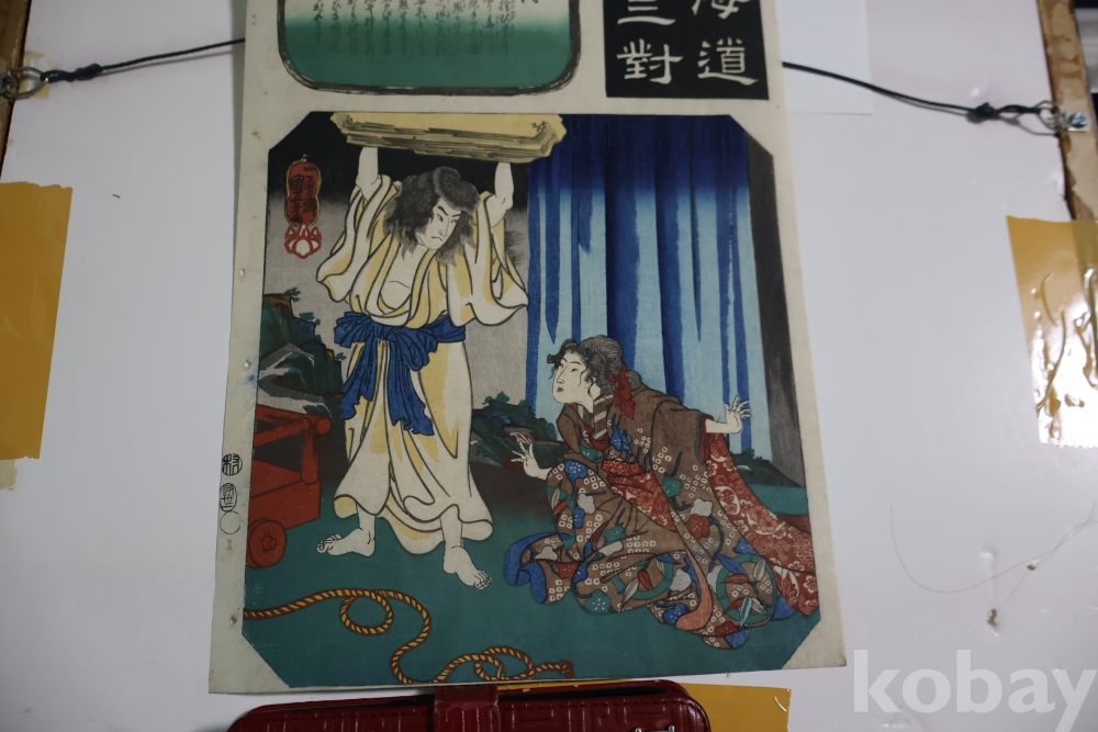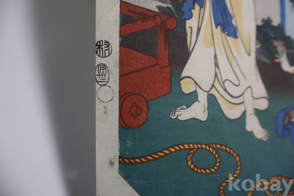 19세기 진품 우키요에 목판화 이며 전세계적인 수집 화가 우타가와 구니요시의 명화 임니다 영어로 작품 설명을 보이는 명화 임니다