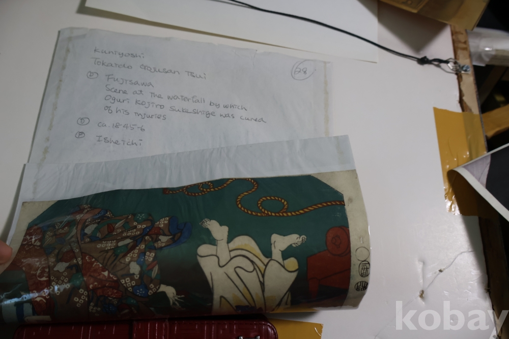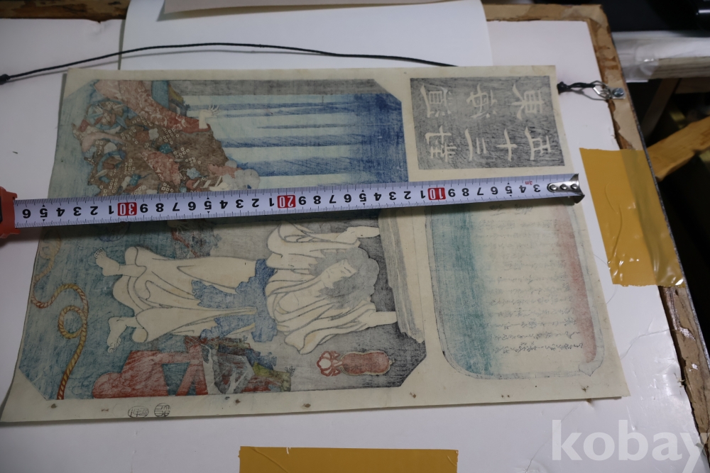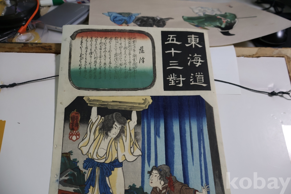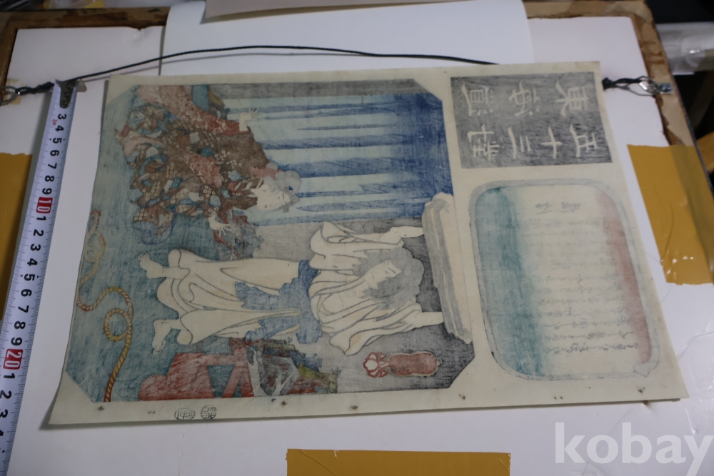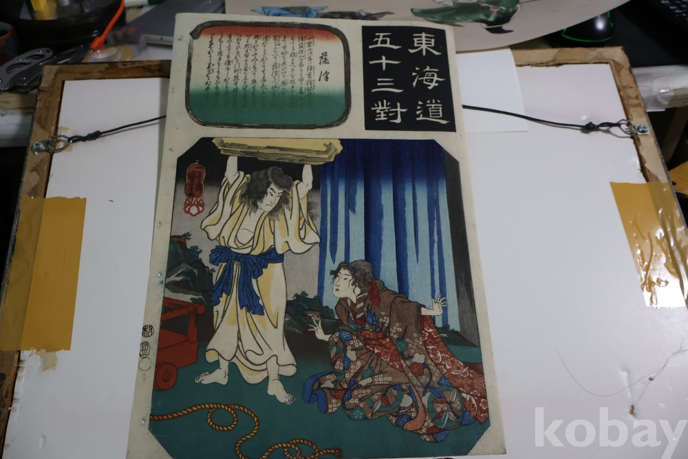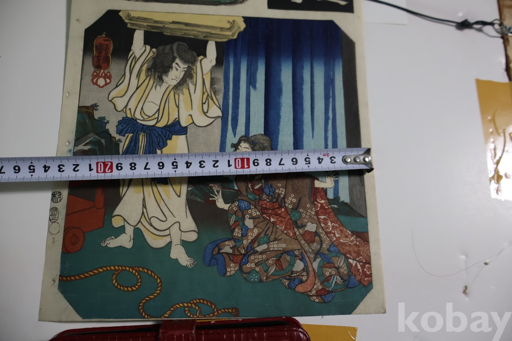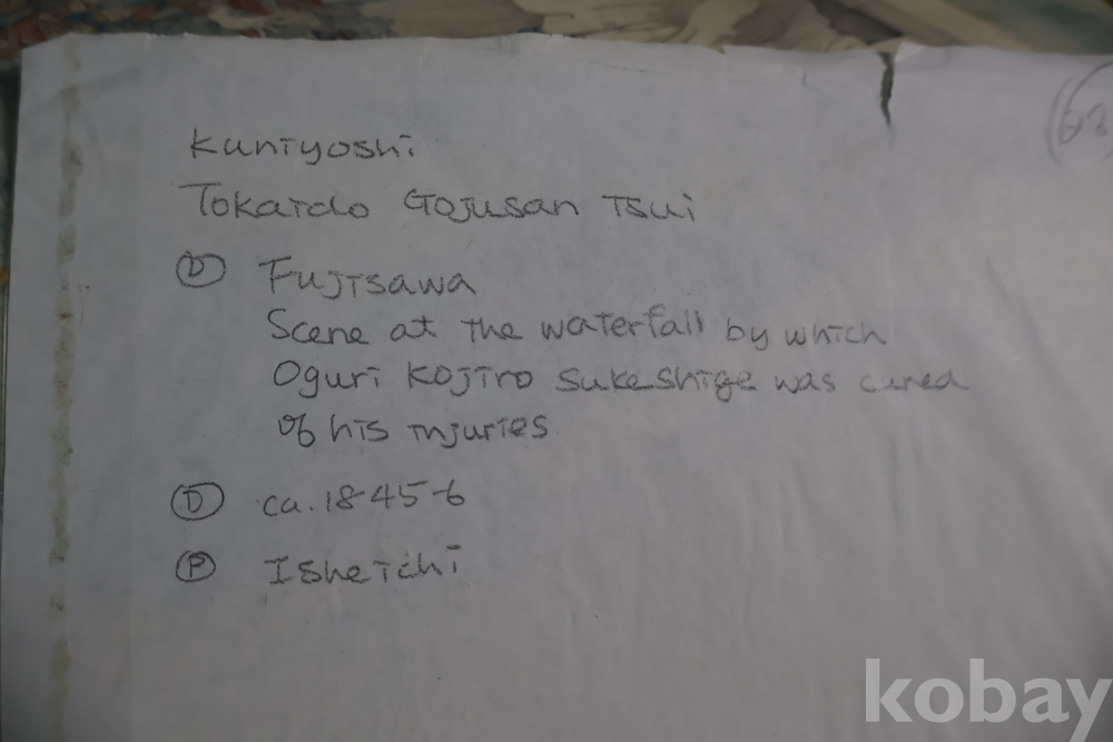 19세기 진품 우키요에 목판화 이며 전세계적인 수집 화가 우타가와 구니요시의 명화 임니다 영어로 작품 설명을 보이는 명화 임니다