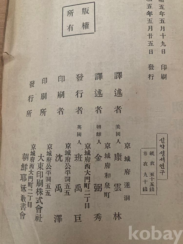 • 발행소: 조선야소교서회 (The Christian Literature Society of Korea)
