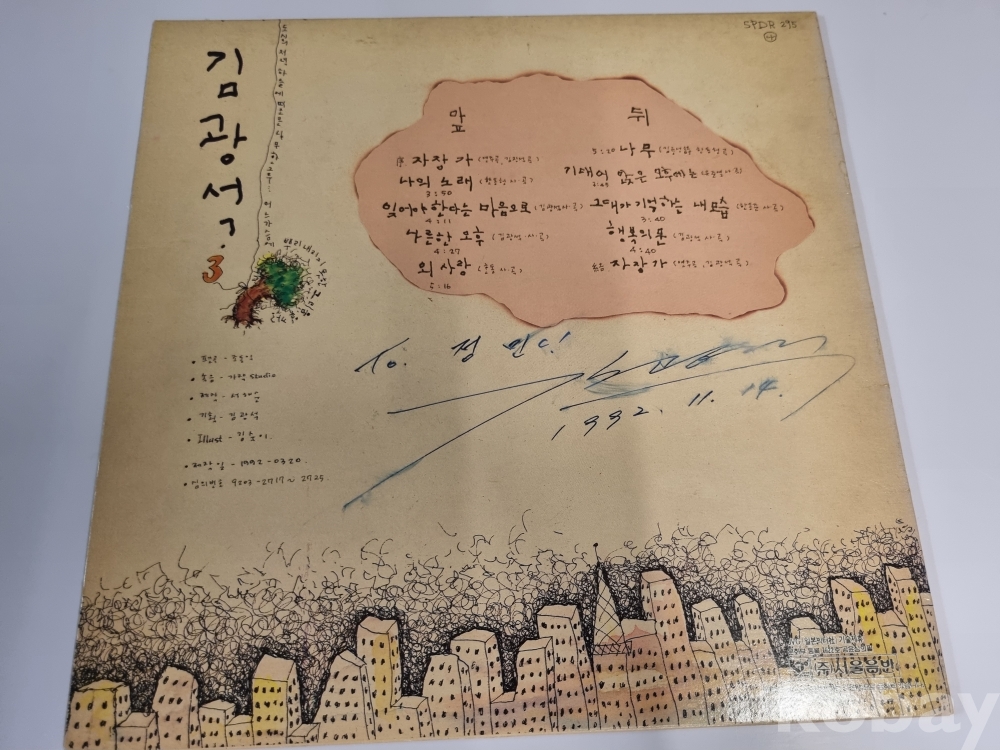 1992년 발매된 초반으로, 친필사인(1992.7.14) 이 기록되어 있어 단순한 음반을 넘어 역사적 사료로써 가치를 지닙니다.