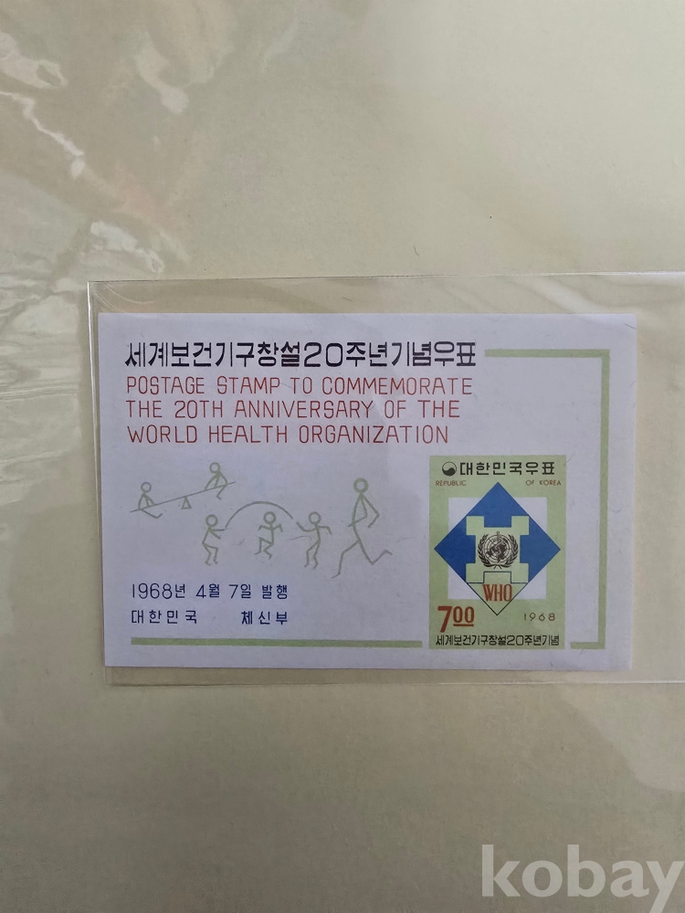 미사용 우표시트/68'4.7세계보건기구창설20주년시트
