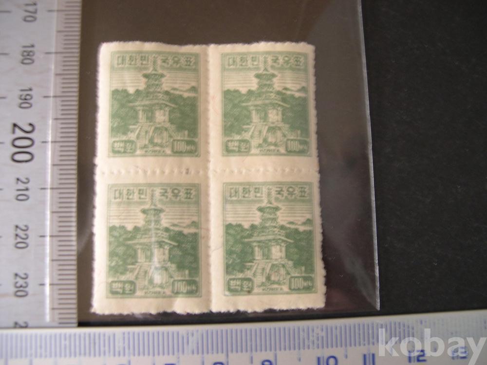 4매블럭 #42428 : 100원 다보탑 - 1차 보통 (1949. 6. 7)