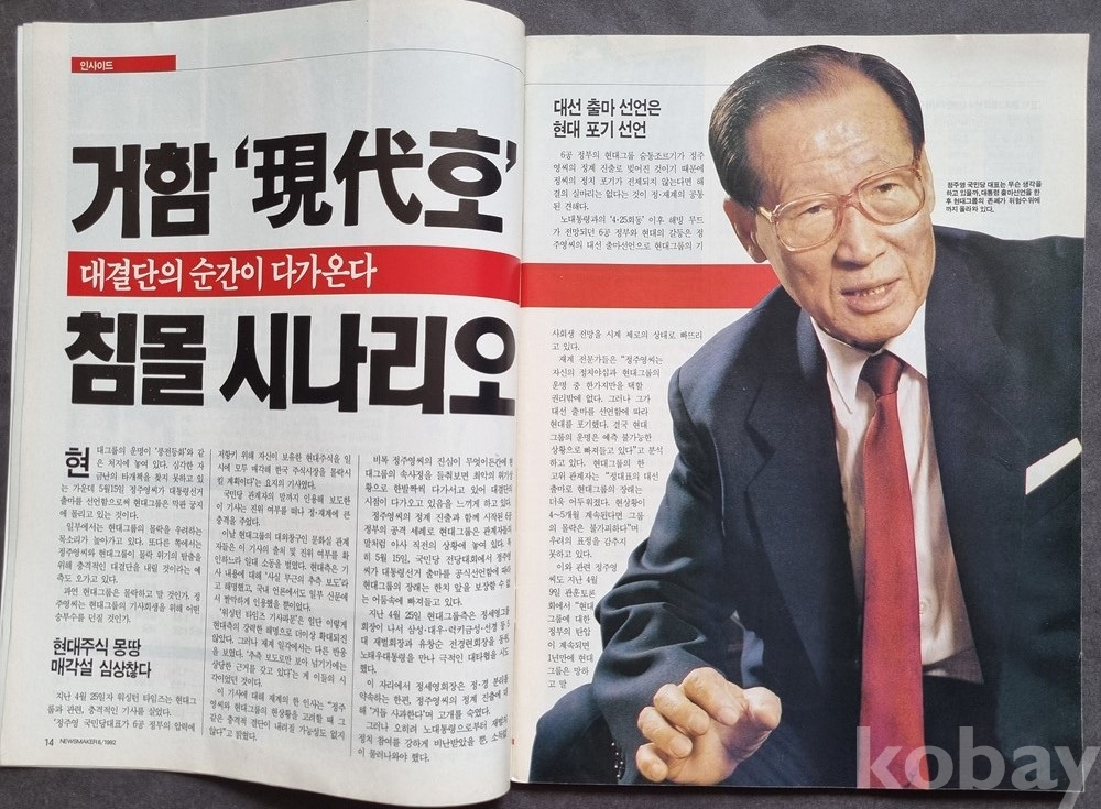 특집 기사를 통해 당시 대선 출마를 선언했던 고(故) 정주영 회장과 현대그룹이 처했던 위기 상황을 심도 있게 다루고 있습니다.