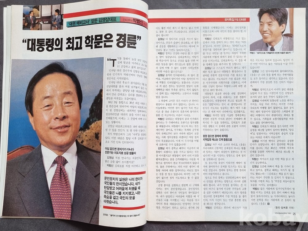표지 모델인 김영삼 대표의 단독 인터뷰("대통령의 최고 학문은 경륜")와