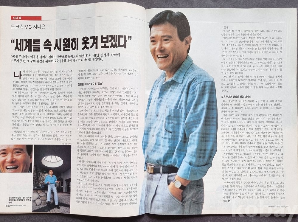 인물 및 문화: * 전설적인 토크쇼 MC 자니윤의 "세계를 속 시원히 웃겨 보겠다"는 인터뷰.