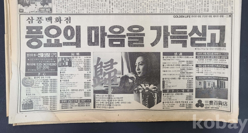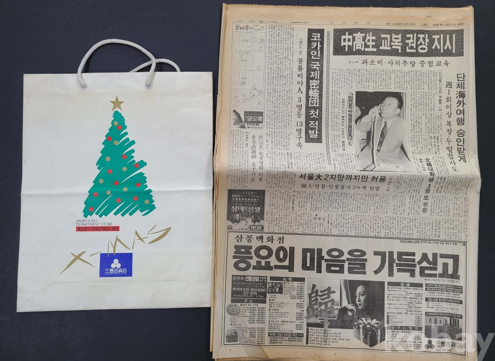 **** 붕괴사고로 사라진 삼풍백화점 자료/삼풍백화점 광고가 실린 1990.9.22. 조선일보/삼풍백화점 종이가방