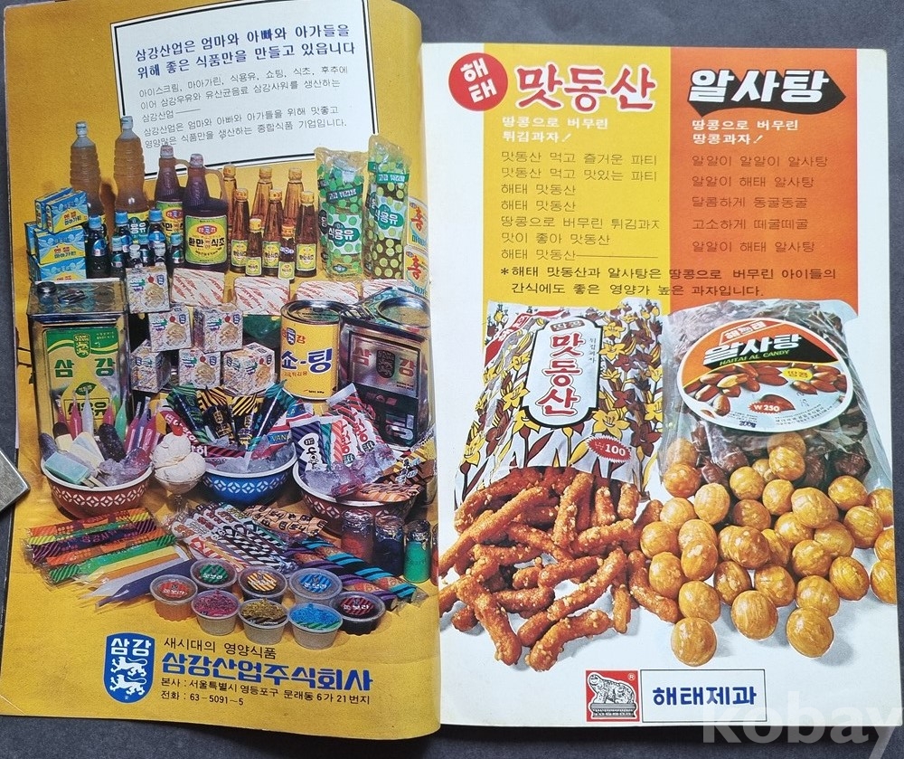 오리온/삼강산업 등: 추억의 과자와 식품 브랜드 광고가 다수 포함되어 있습니다.