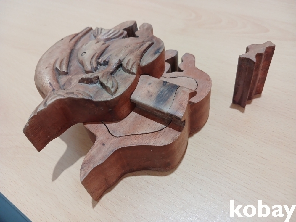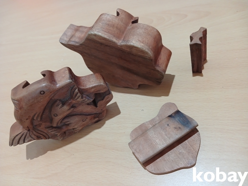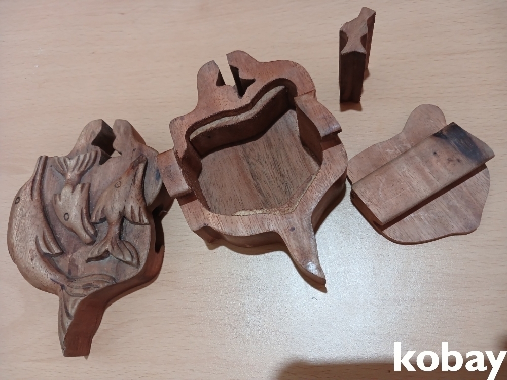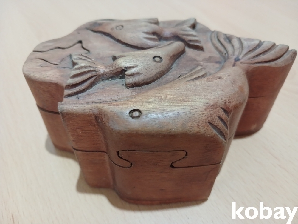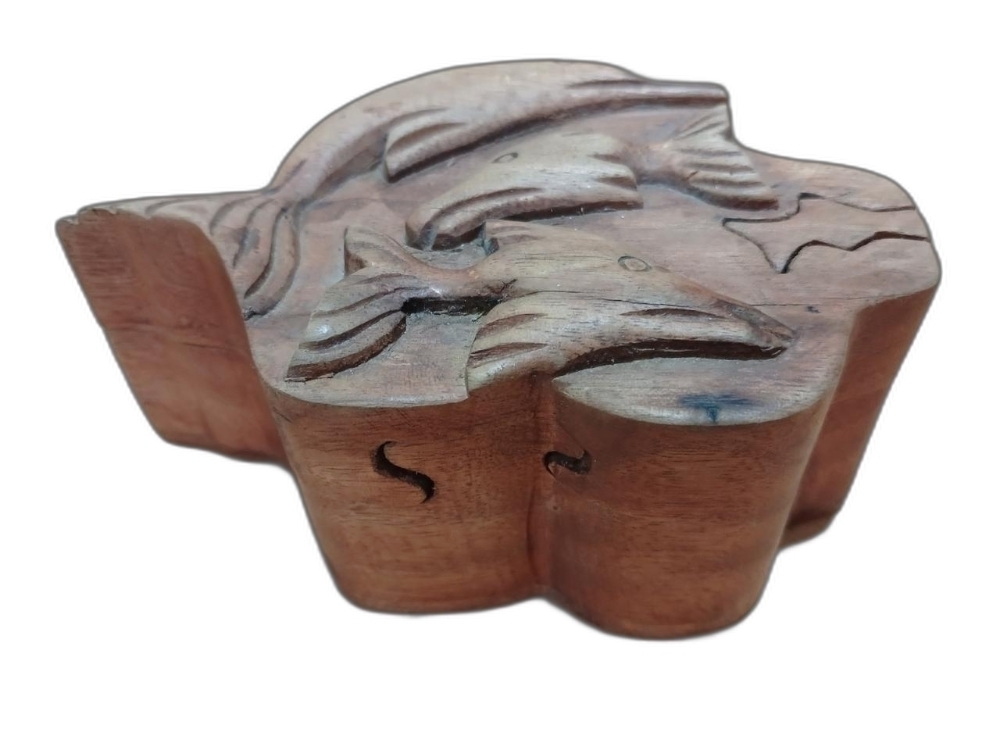 돌고래 모양의 나무 조각 함 입니다.