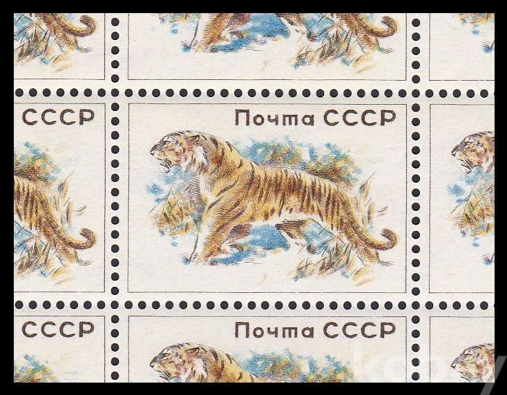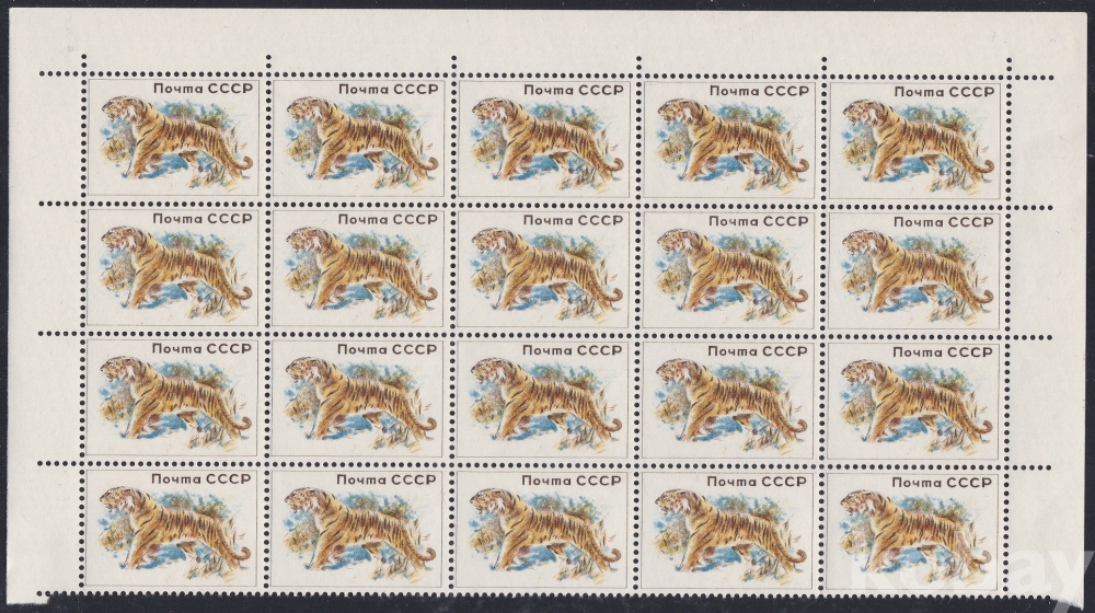 (하늘천) 러시아 1960년 백두산호랑이 (아무르호랑이), 올 컬러 트라이얼 테스트 프루프, 에세이, 20매 블럭