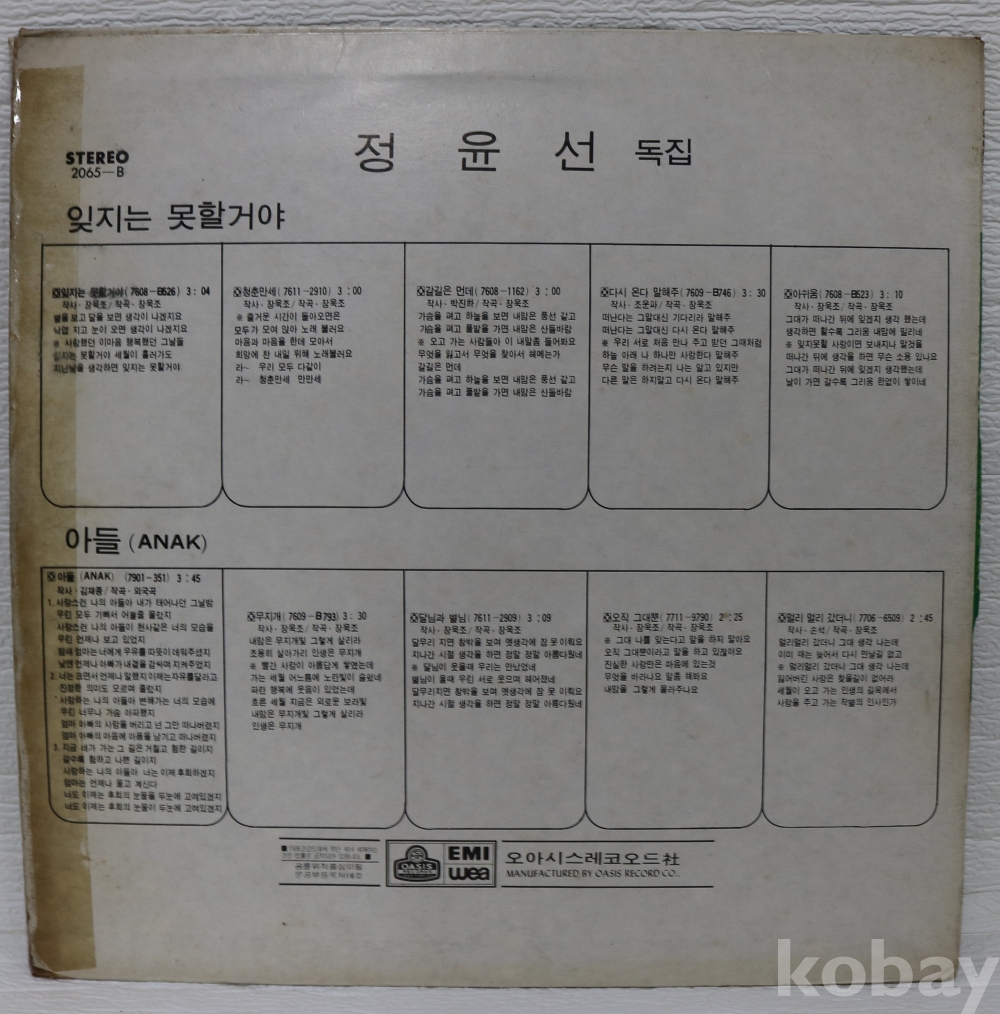 | 자켓상태 | G : 눈에 띄는 손상, 테이프, 필기 존재 | 음반상태 | VG : 생활 기스 다수, 가벼운 노이즈 존재 | 발매정보 | 초반 | 가사지여부 | 유 |