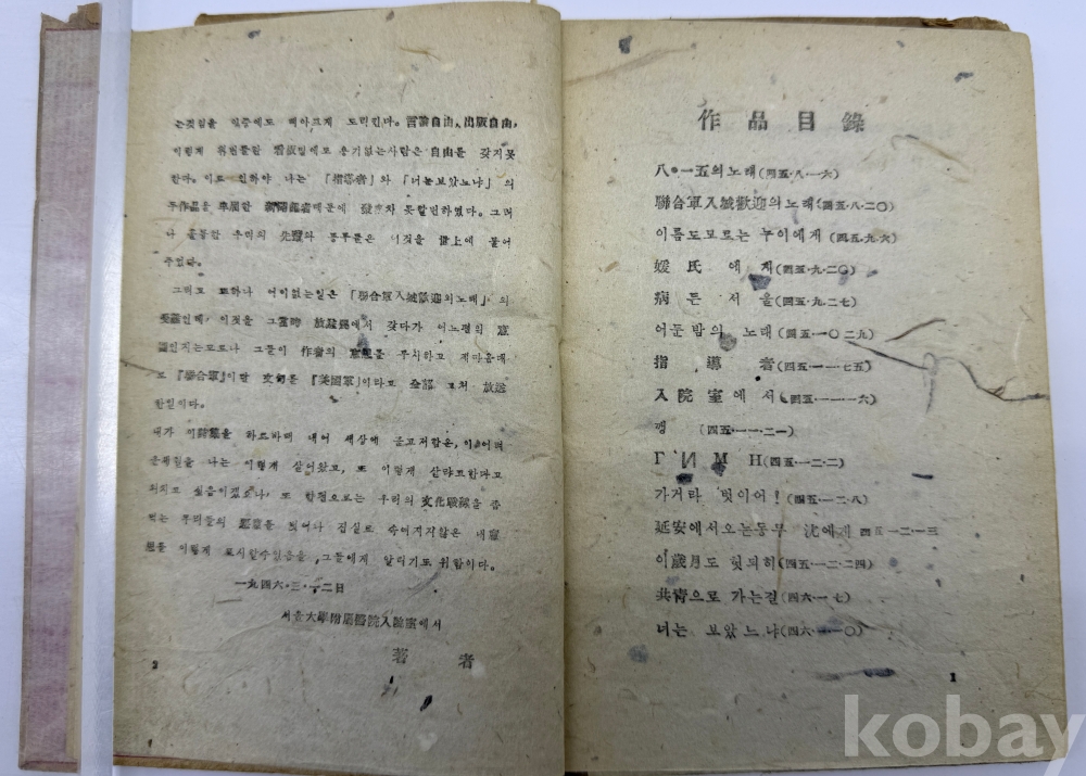 물 품 명 | <취향지가> [56] 1946년 정음사 발행, 월북 작가 오장환(吳章煥) 시집 [병든 서울] 초판본 1책 | |||||
