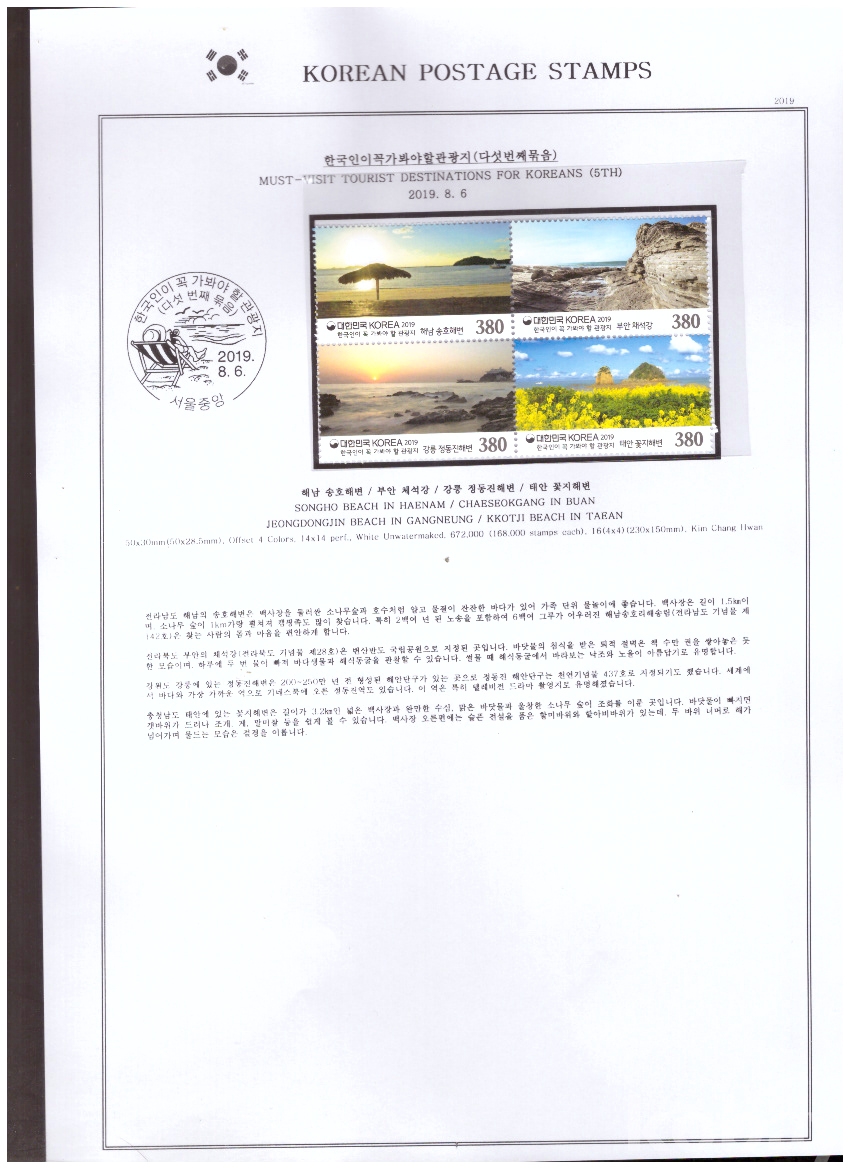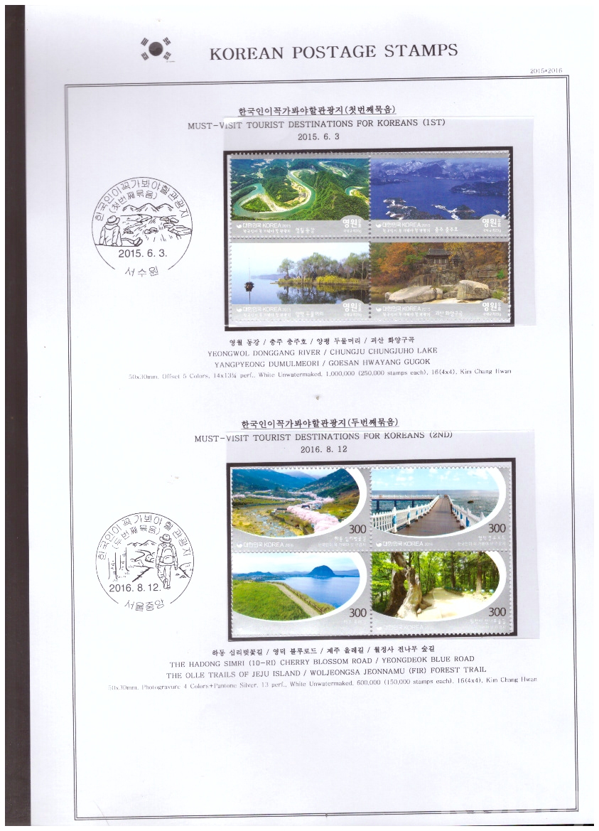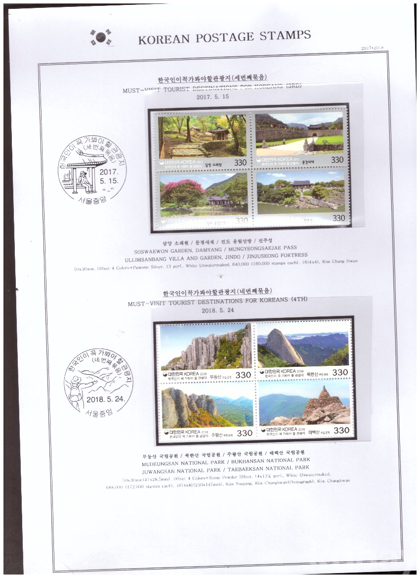 (시리즈우표) 2015-2019 한국인이 꼭 가봐야 할 관광지 5 blocks (20완) MNH