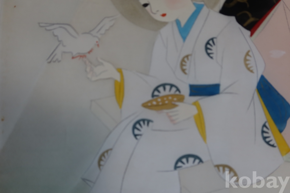 일본 성모 비단 화 임니다 이유를 알수 없으나 한글로 신부님의 낙관이 보임니다 아름답고 여운을 가진 명화 임니다 카메라 초점이 부정확 함니다 정밀한 명화 임니다