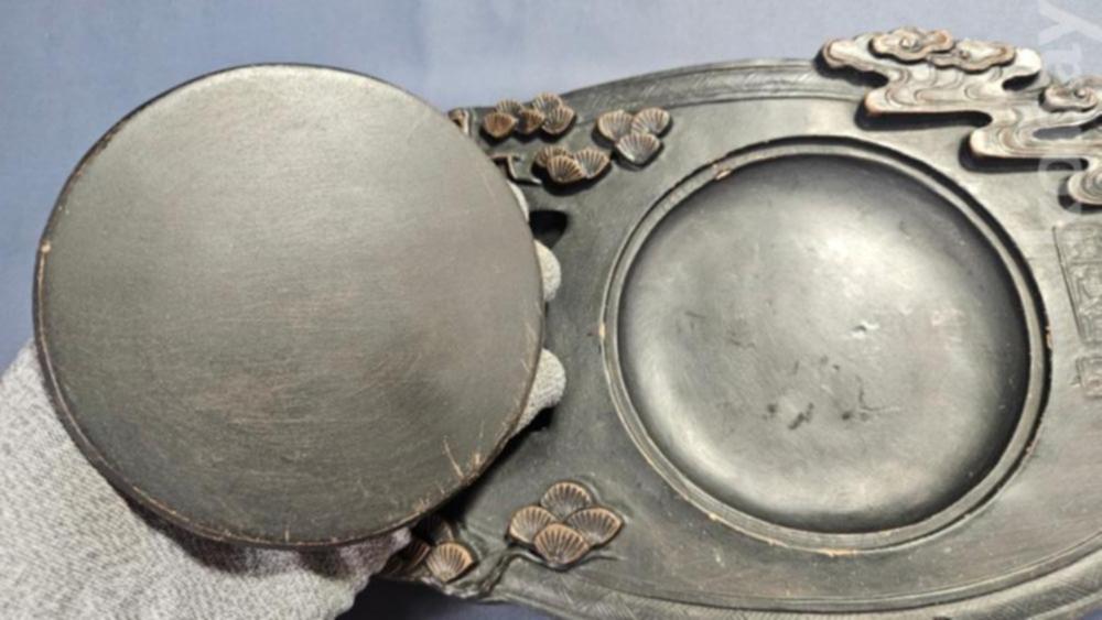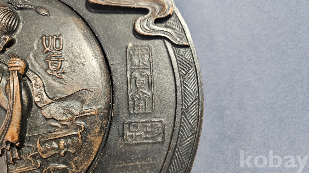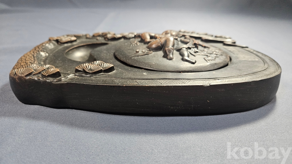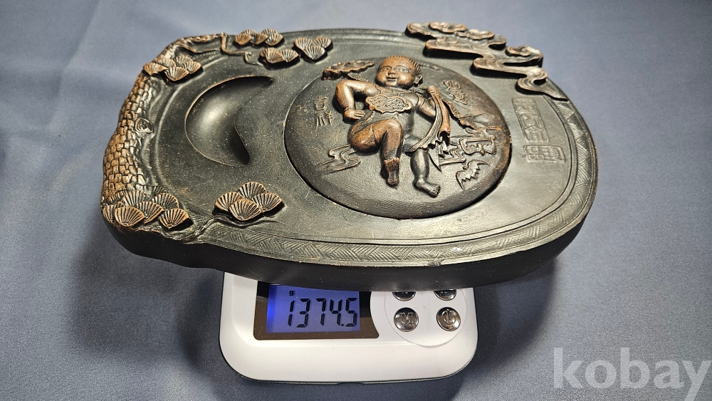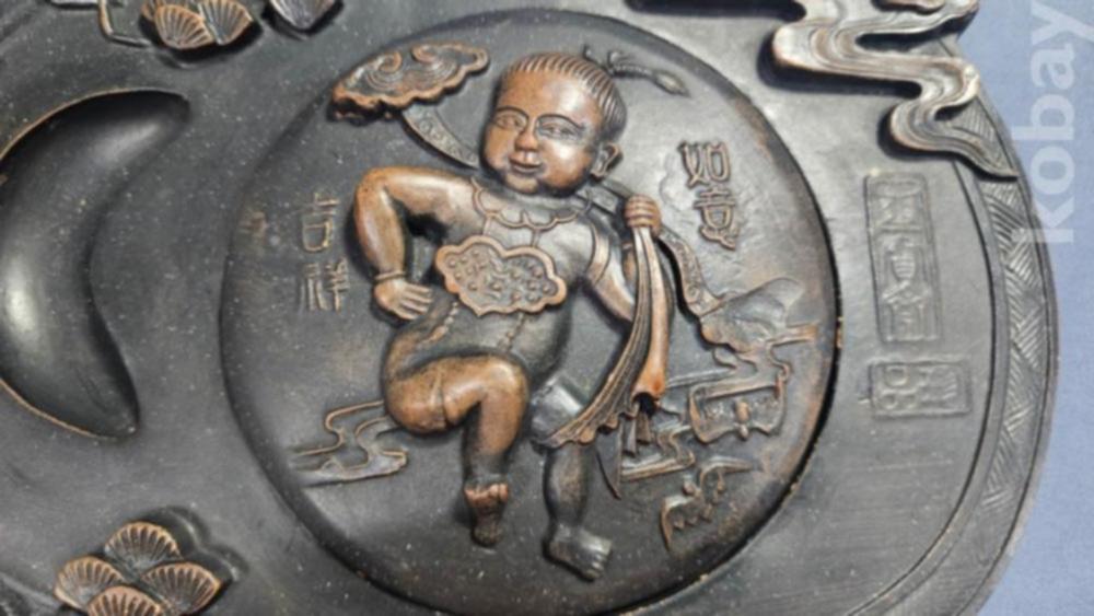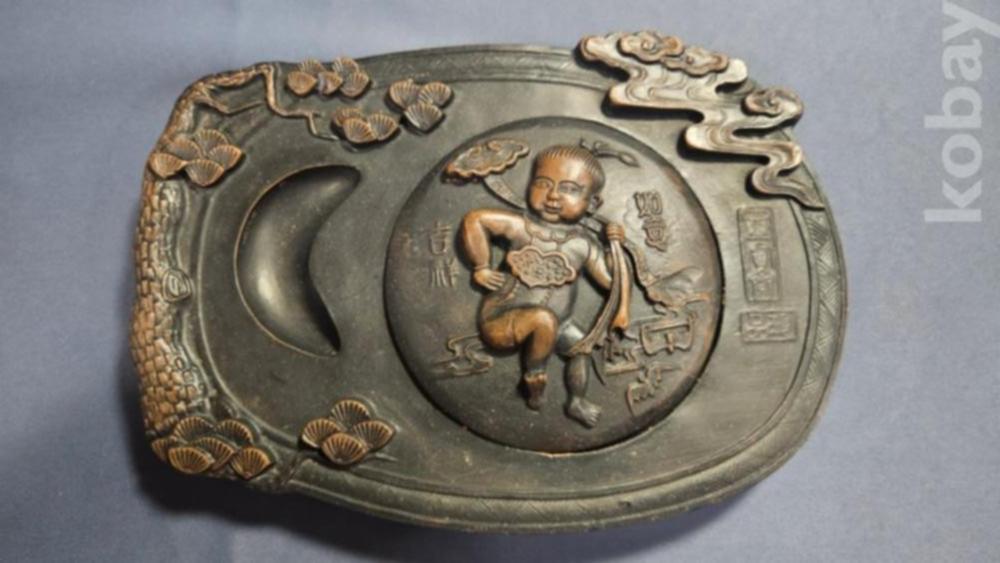 동자문양이 조각되어 있는 자사재질의 벼루입니다.