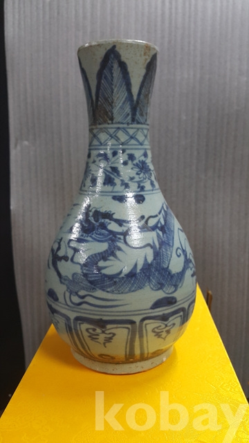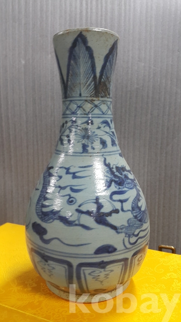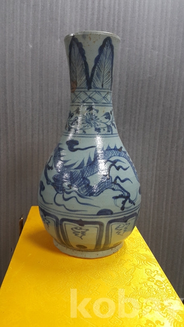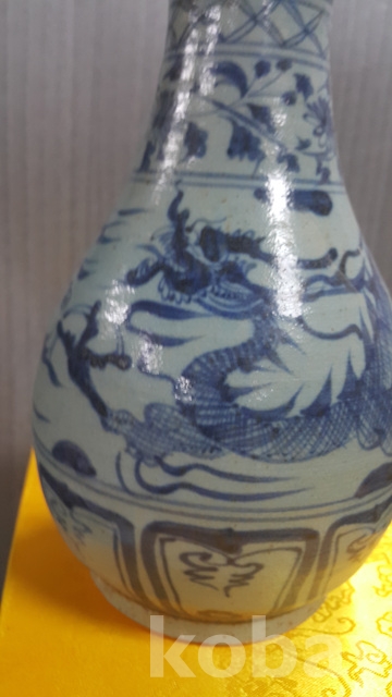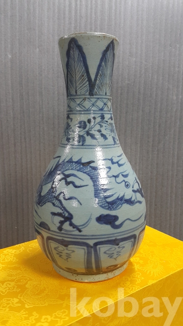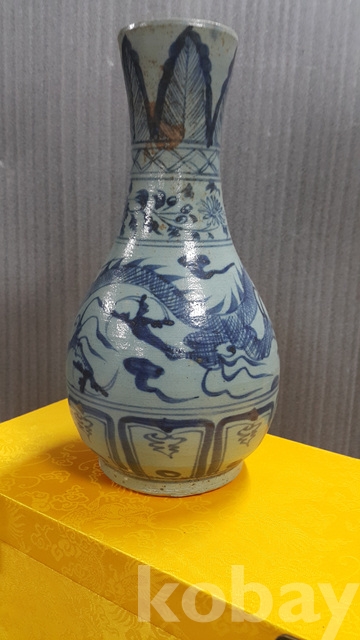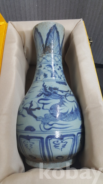 c-119.고급상자에담긴 수공으로그린 청화백자 파초용문 매병