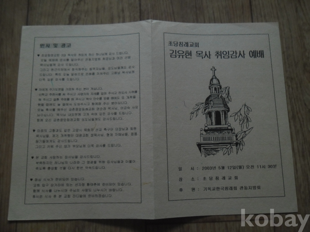 2003년 초당침례교회 김유현 목사 취임감사예배