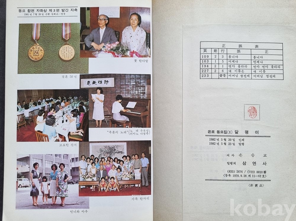 당시 저자의 금혼식(결혼 50주년)과 동요집 발간을 기념하여 지인 및 가족들에게 배포된 것으로 보입니다.