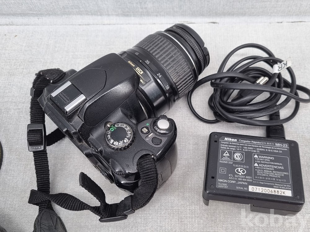 구성품: 카메라 본체, 스트랩, 렌즈, 정품 충전기(MH-23), 전원 케이블, 렌즈 캡.