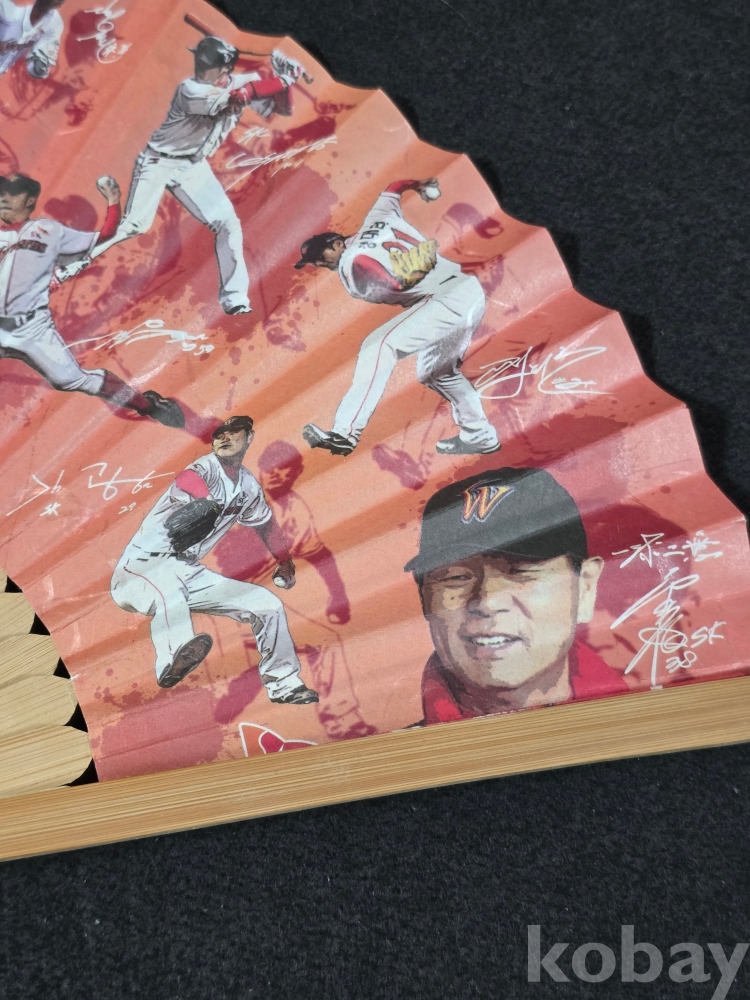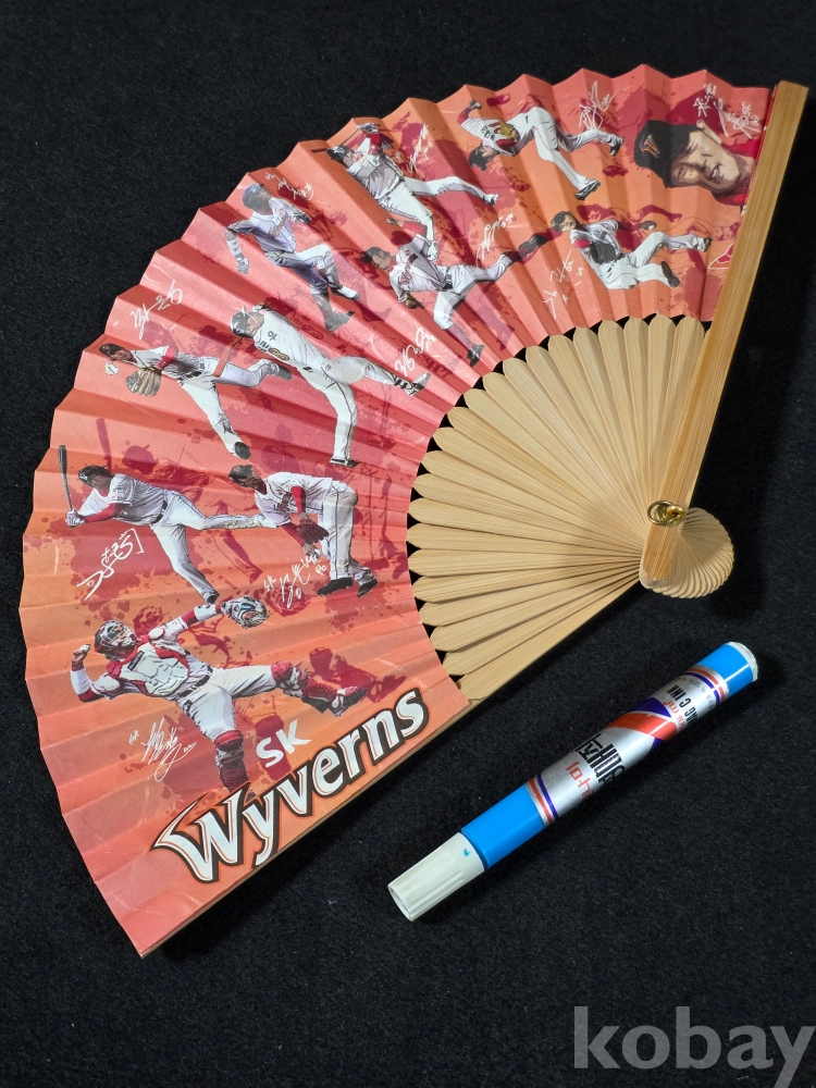 (((프로야구자료))) 추억의 SK 와이번스 김성근감독등 전선수단 인쇄싸인 부채