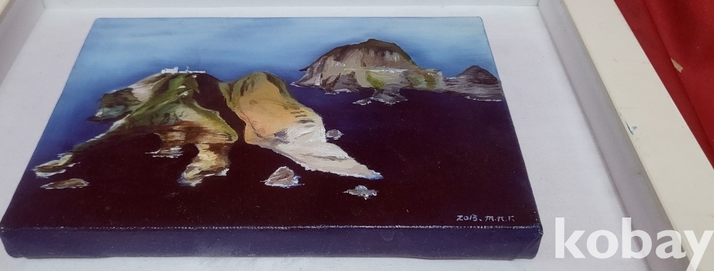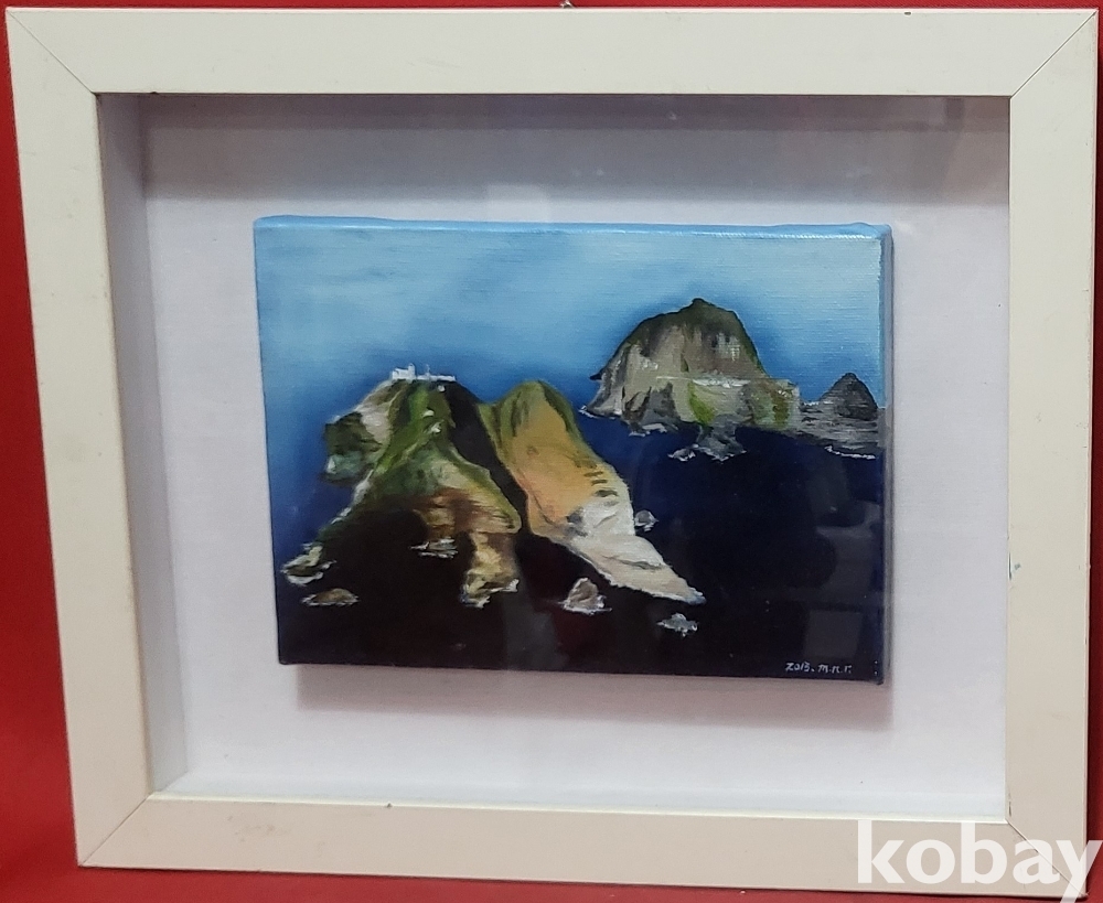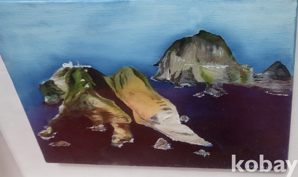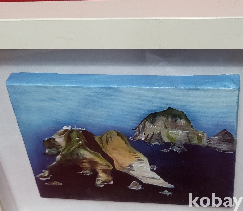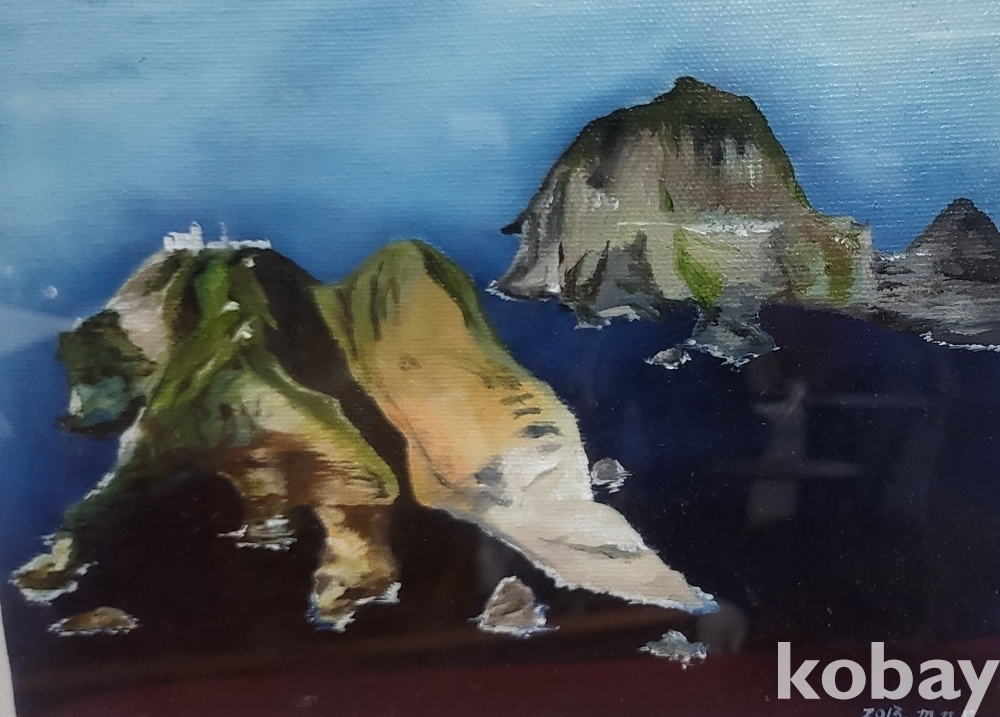 작가의 사인이 보이는 켄버스 유화로 독도 그림입니다,