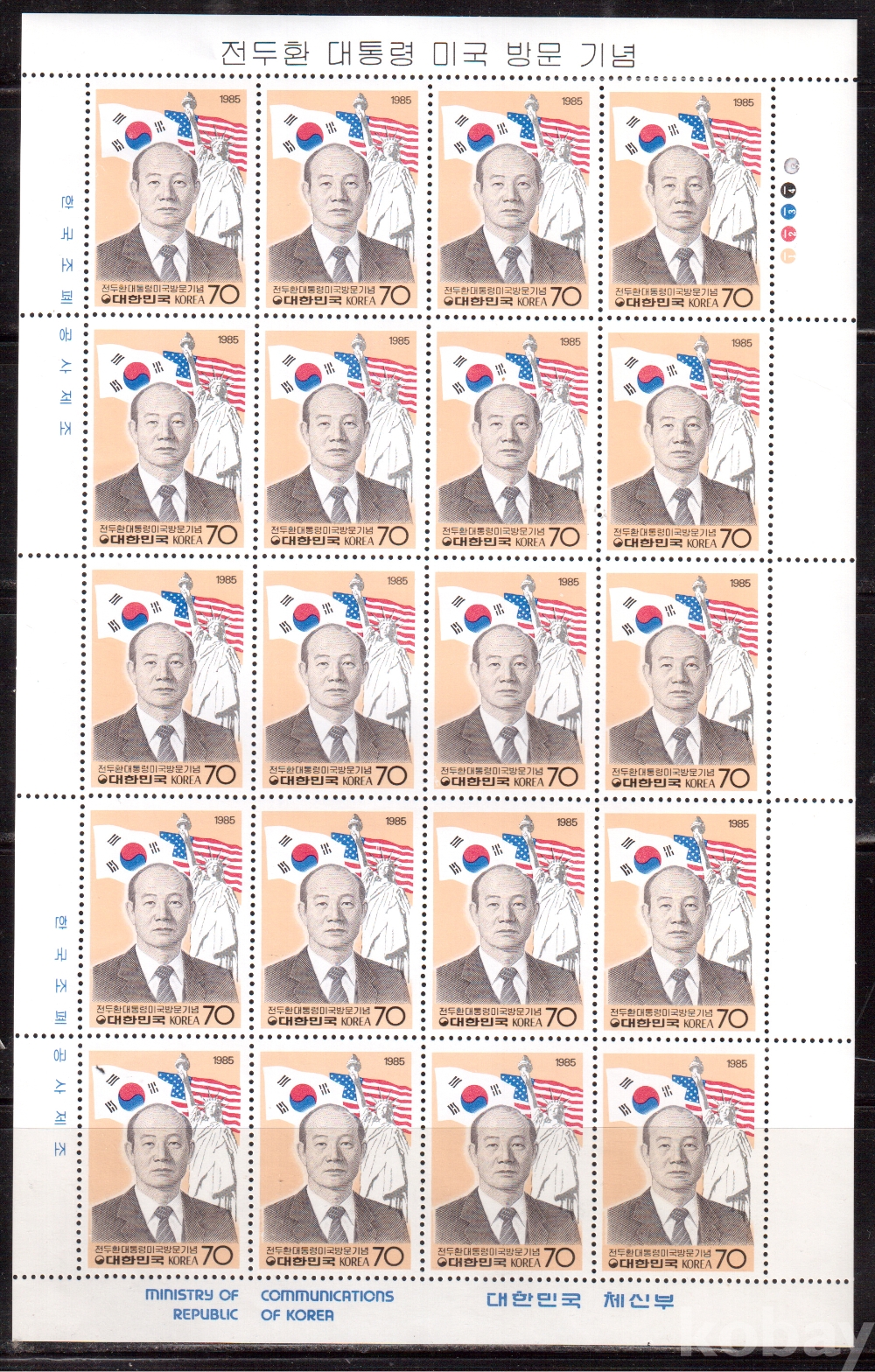 (한국전지) 1985.4.24 전두환대통령 미국 방문 sheet of 20 MNH