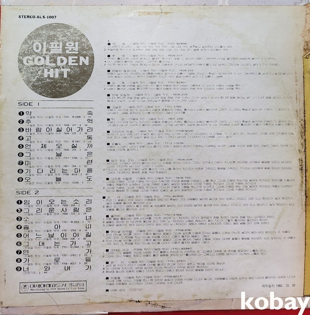 자켓 흠은 있읍니다, 음반 미세한 기스는 있을 수 있읍니다,