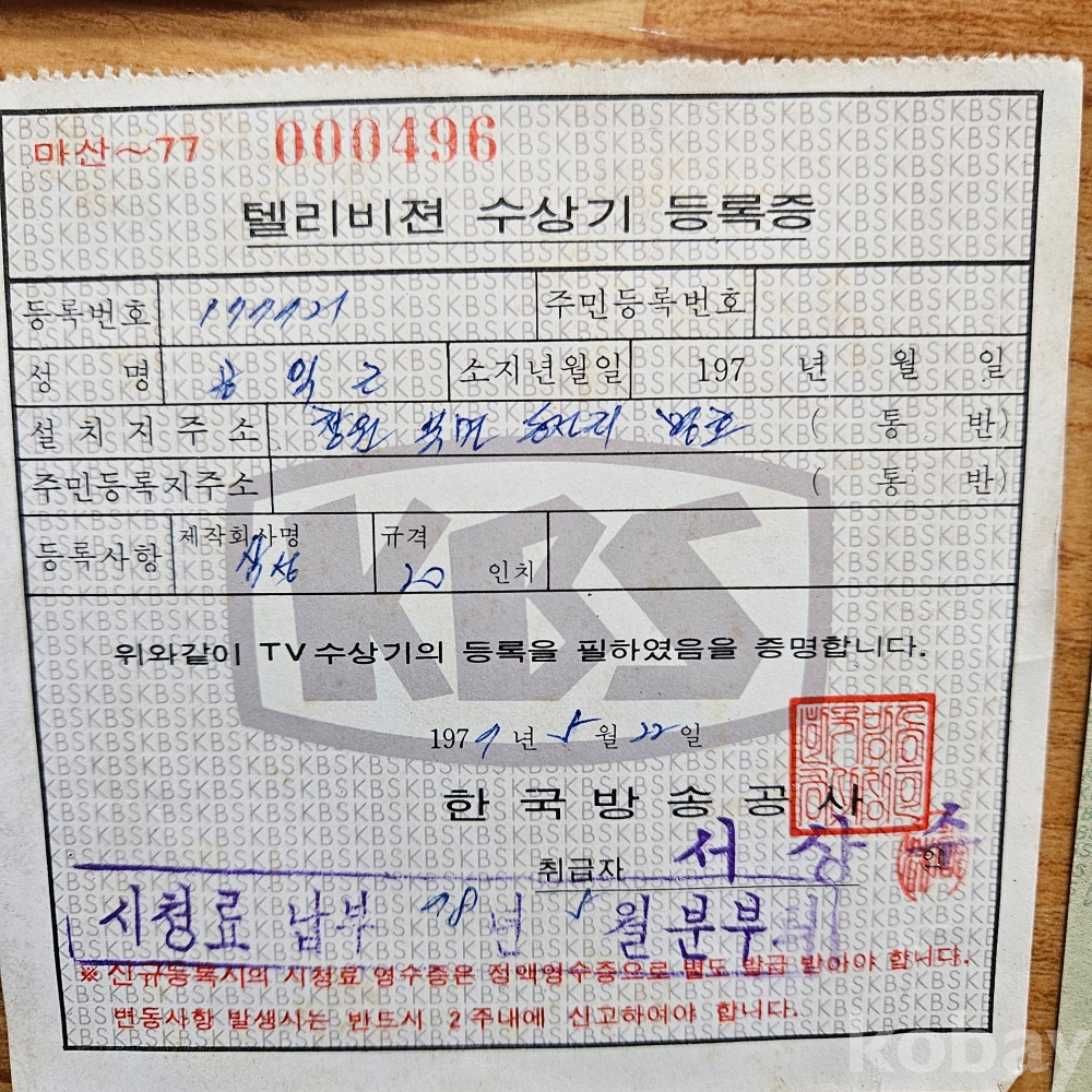 (지금은 찿아볼수없는 아주귀한1970년대 티비수신료 요금 자료자료입니다)