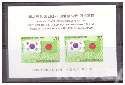 (한국시트) 1985.6.15 엘샤드 방글라데시대통령 방한 sheet of 2 MNH
