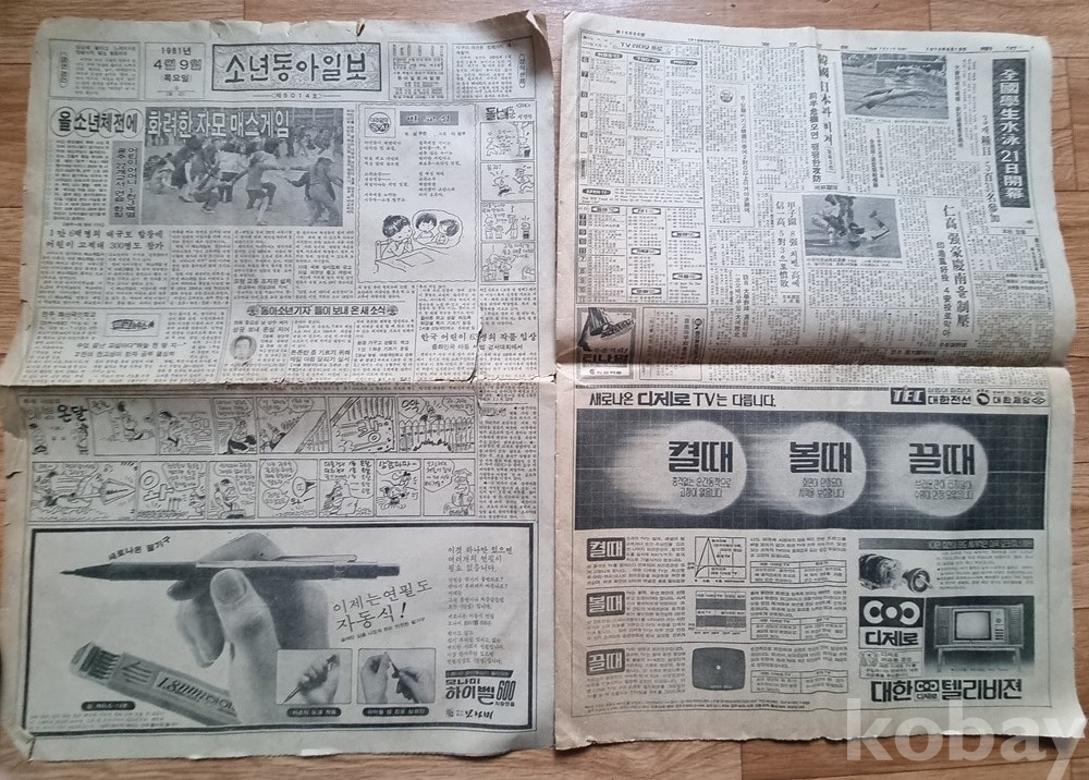 | 어린이 자료 | 1981년 소년동아일보 (화려한 자모 매스게임 기사 등) | 당시 교육 환경과 어린이 문화를 보여주는 희귀본 |