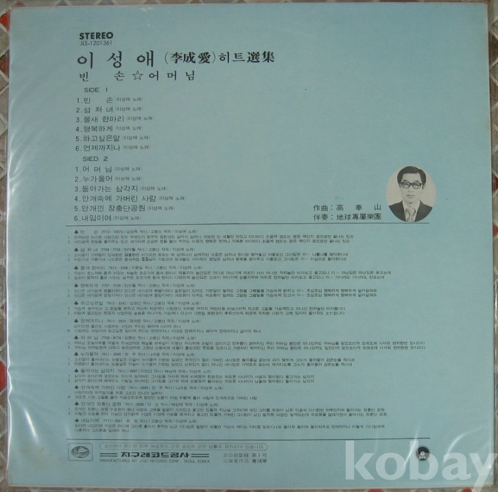 가수 이성애 히트 선집 음반 LP