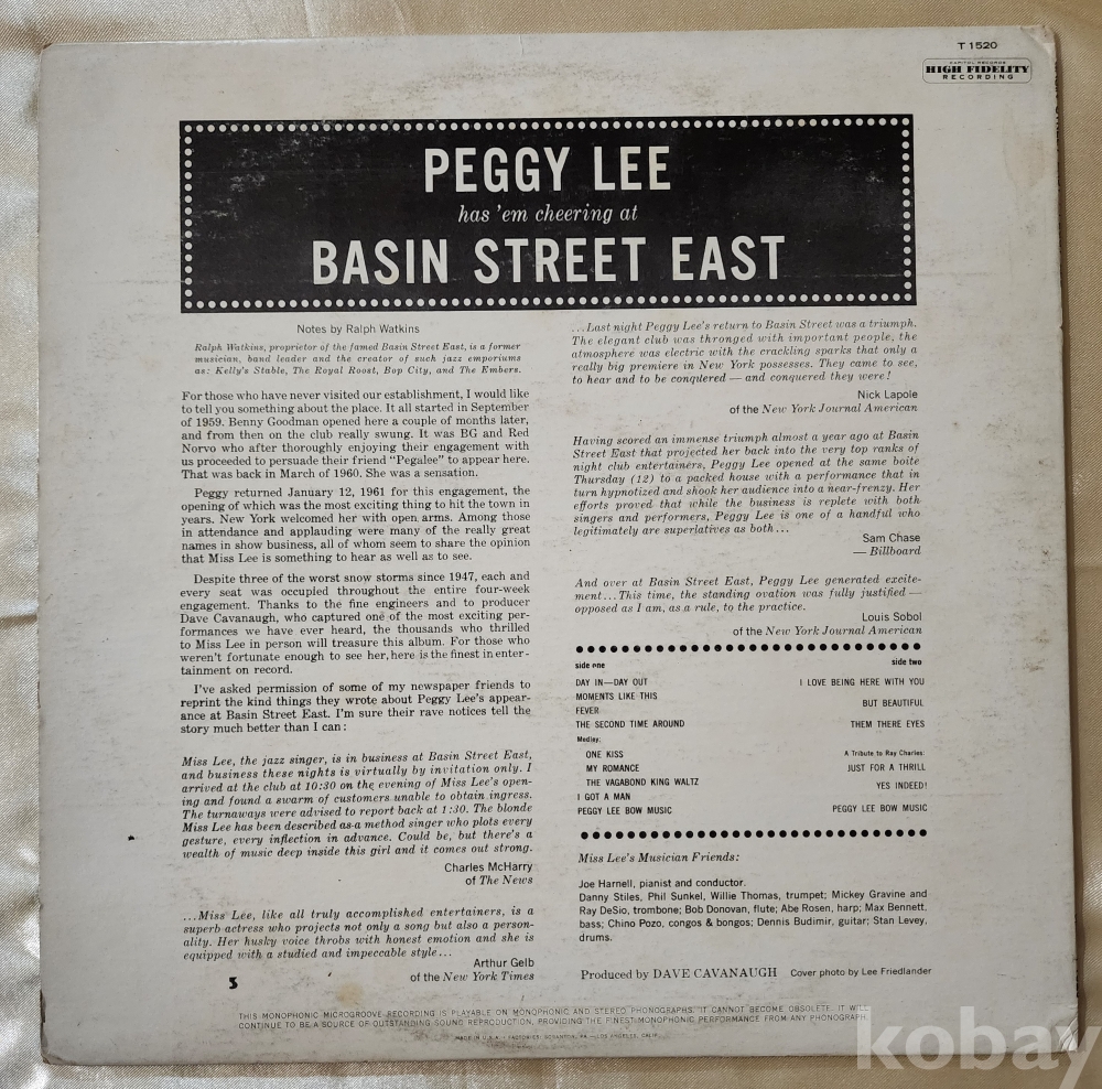 이 음반은 페기 리의 미국 초반 음반 입니다