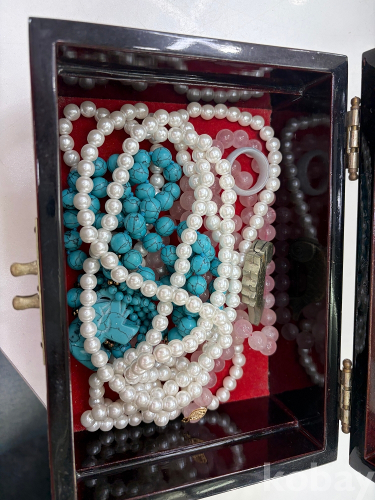 보석함 자물쇠는있는데 열쇠가 없네요 옥목걸이랑 반지는 진짜같기도하고 하여튼 모조품으로 치고 올려놉니다