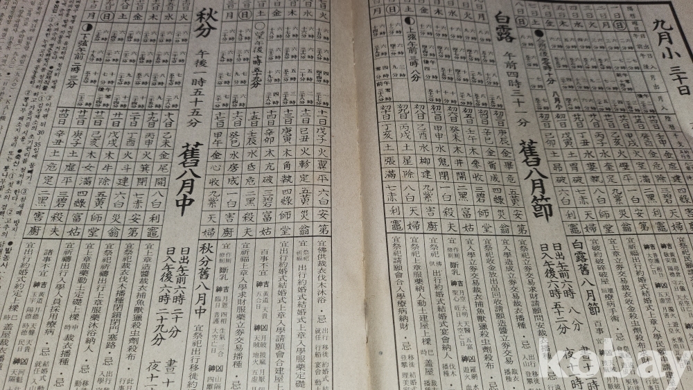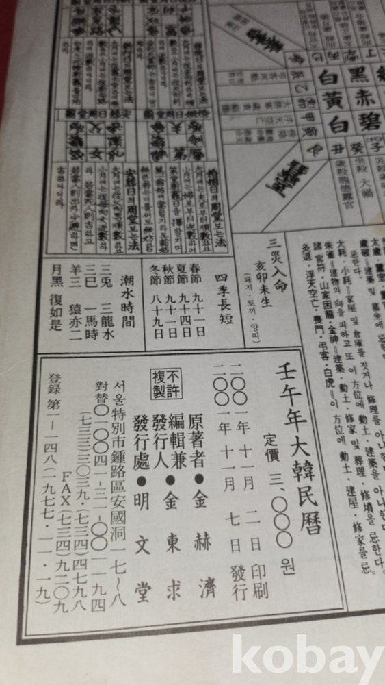 운세 절기 국내외 사건 용약 같은 생활 자료도 함께 수록된 전통식 역서(歷書)입니다,